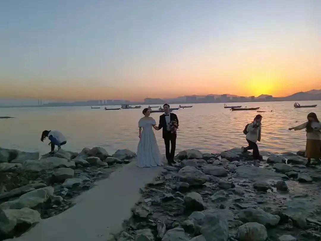 日落不是结束,而是另一个美丽的开始。生活无论怎么匆忙,都别错过日落和夕阳。 看看我镜头下的杭州落日是多么的温馨浪漫啊,钱塘江边夕阳西下情侣们你侬我侬好不甜蜜,新娘的婚纱在夕阳的映照下是如此的美丽。此时此刻我的心都被甜蜜的爱情融化了,从此又开始相信爱情了。