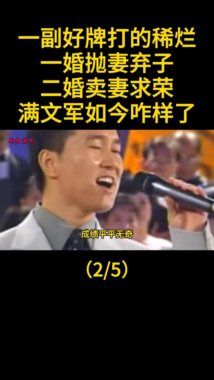 一副好牌打的稀烂,一婚抛妻弃子,二婚卖妻求荣,满文军如今咋样了?没过多久就因为不够活跃被歌厅辞退(2/5)。 失去收入来源的满文军陷入人生低谷,他租住在北京一处老旧小区的地下室,屋子只有几平米,潮湿的墙壁上满是霉斑,白天也得开着灯,每月几百元的房租成了他的负担。就在他快要交不起房租甚至想放弃唱歌回老家时,曾经在歌厅认识的好友《懂你》作词人薛瑞光找到他。 薛瑞光一直觉得满文军的嗓音极具感染力,尤其是唱抒情歌时能传递出最真实的情感,于是推荐他试唱《懂你》。满文军拿着乐谱犯了难,他还是认不全上面的符号,只能跟着薛绿光哼唱的调子一点点找感觉。两个小时里他反复录制却总因为节奏或音准问题达不到要求,急得满头大汗。 薛瑞光没有放弃,他一边帮满文军逐句分析歌词情感,一边调整伴奏速度,最后干脆把《懂你》的演唱权送给满文军,让他慢慢琢磨。 1996年满文军带着这首《懂你》参加第七届全国青年歌手电视大奖赛,站在全国观众面前他深吸一口气,将对母亲的感恩、对亲情的理解融入歌声里,最终斩获专业组第一名。 一夜成名后满文军的人生彻底改变,他从默默无闻的草根歌手变成了各大晚会争相邀请的嘉宾,商演邀约不断,专辑一张接一张的出,《懂你》更是传遍街头巷尾,就连农村老家的乡亲们都能哼上几句。 那时的他站在舞台上穿着笔挺的西装,与之前做瓦工时的狼狈模样判若两人,却没料到名气带来的不仅是荣耀,还有对初心的考验。 在满文军还没成名的时候他就已经组建家庭,他与妻子高晓莹青梅竹马,满文军跟其他人不一样,知道自己家境不好就努力奋斗,用知识改变命运。相反他对学习没有特别大的兴趣,成绩平平无奇。 当时满文军上初中,情窦初开的他喜欢上了一个女同学,满文军开始疯狂追求,在那个年代满文军的行为是令人羞耻的事情,所以女同学不但没有接受满文军,还把他的行为告诉了老师。校长知道后把满文军开除。 满文军的父亲知道自己儿子不是学习的料,得知他被开除后也只是说了他几句就让他跟着自己学瓦工。谁能想满文军不但不是学习的料还不是干活的料,每次干活的时候总是不好好干,三心二意的干活状态彻底把父亲惹怒。 其实他不是干不了活,而是当时他心里依然惦记着那个女孩,每天都会想起她,这才导致他干活的时候不用心。从此满文军每天雷打不动的去学校等那个女同学,接她上课送她回家。长时间坚持下来满文军居然感动了那个女同学,两个人谈起了恋爱,而这个女同学就是满文军的第一任妻子高晓莹。 1991年22岁的满文军与高晓莹结婚,不久他们的孩子出生,那时的满文军只是粮食局演唱队的普通队员,收入微薄,一家三口挤在一间小出租屋里,日子过得紧巴巴的,高晓莹从没有抱怨过。