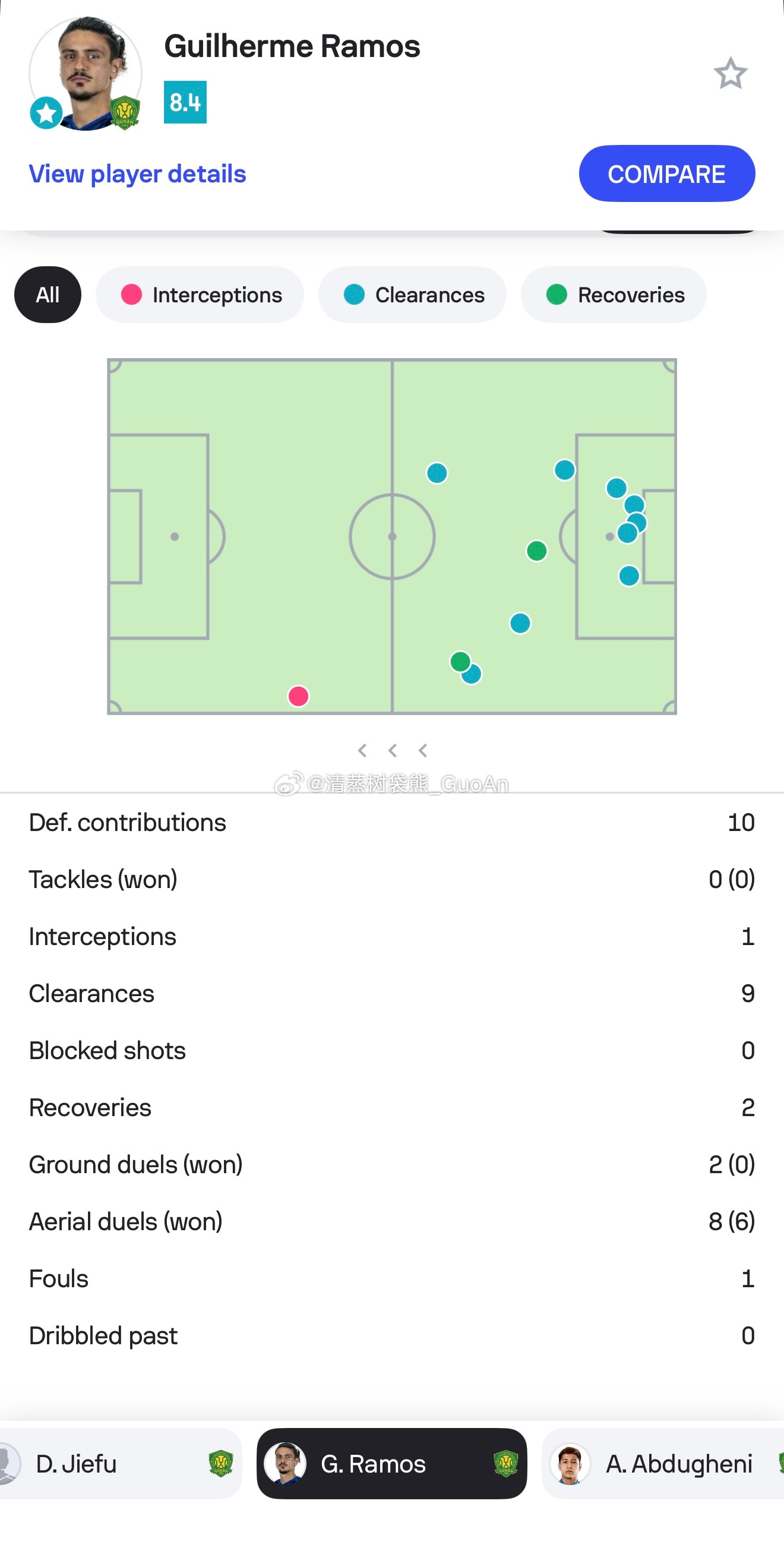 拉莫斯的前两场比赛,除了对阵海港的上半场有点没进入状态,剩下的一场半发挥还是比较稳定的。昨晚sofascore给出了全场最高评分,8次空中对抗成功6次,贡献9次解围,以上数据均为全场最高,同时贡献了近100次准确传球,攻防两端对于球队均有帮助。