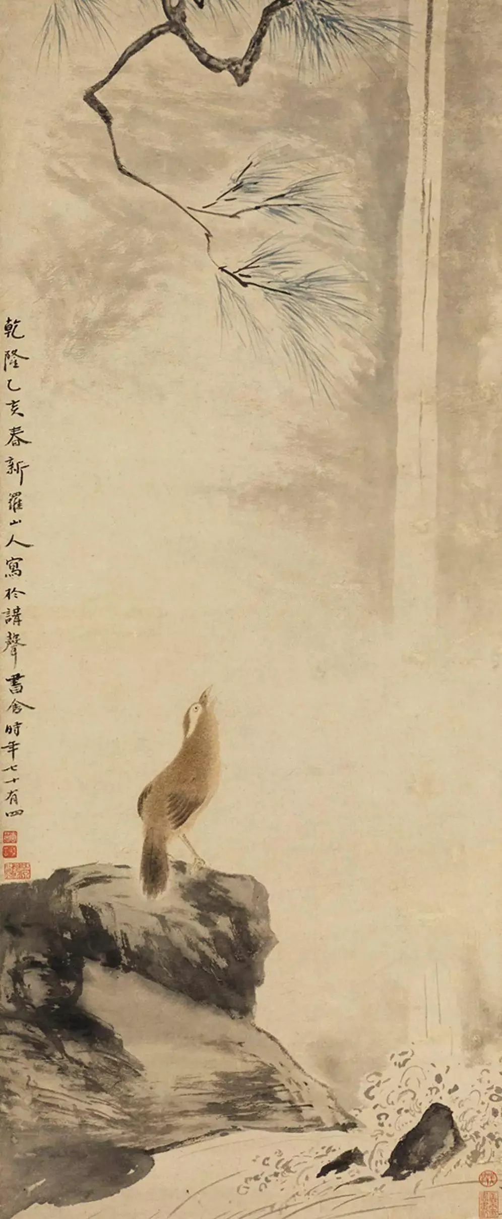 华嵒(1682~1756),一作华嵒,字德嵩,更字秋岳,号新罗山人、东园生、布衣生、白沙道人、离垢居士等,老年自喻“飘篷者”。善书,能诗,时称“三绝”,为清代杰出绘画大家。华嵒是清康雍乾年间的著名画家,他笔下的鸟堪称一绝,最负盛名。
