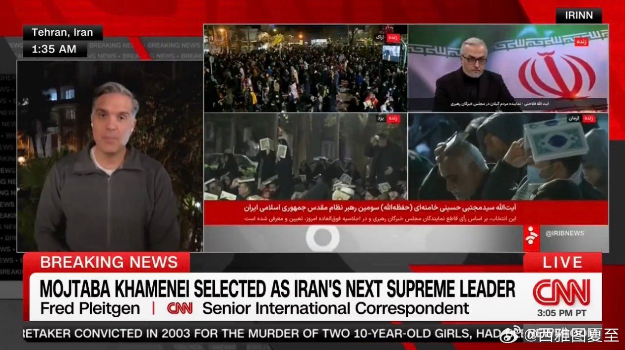 CNN记者在德黑兰现场报道:伊朗新“最高领袖”公布仪式,本人并未露面,是另一个人在台上念简短声明,台下支持者欢呼