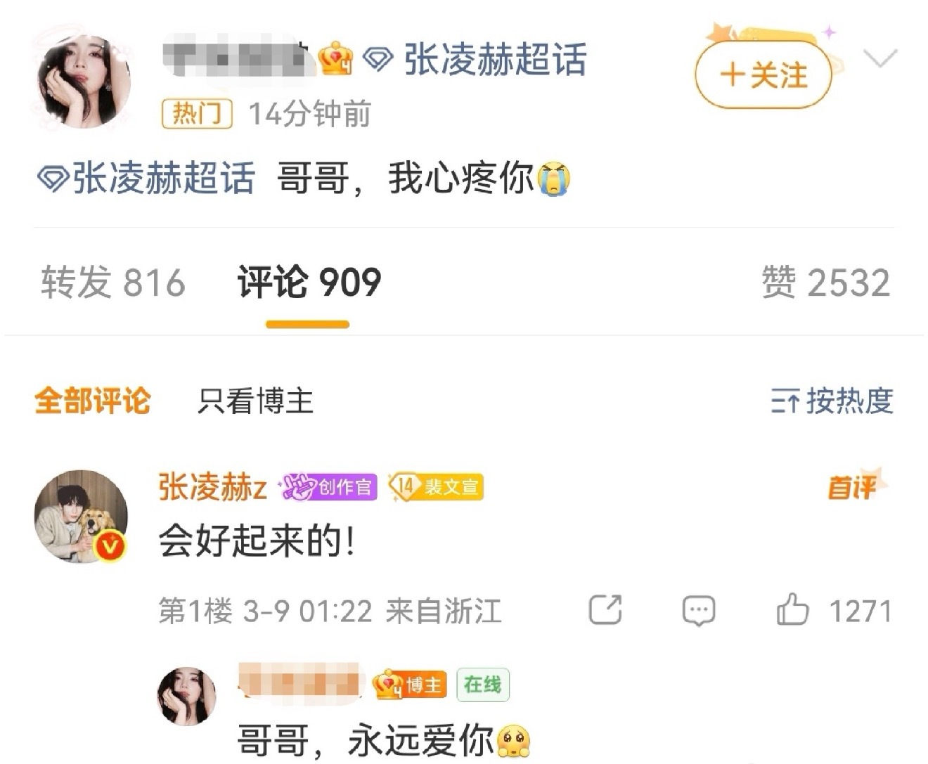 张凌赫凌晨回复粉丝会好起来的昨天那波确实审判有点过了