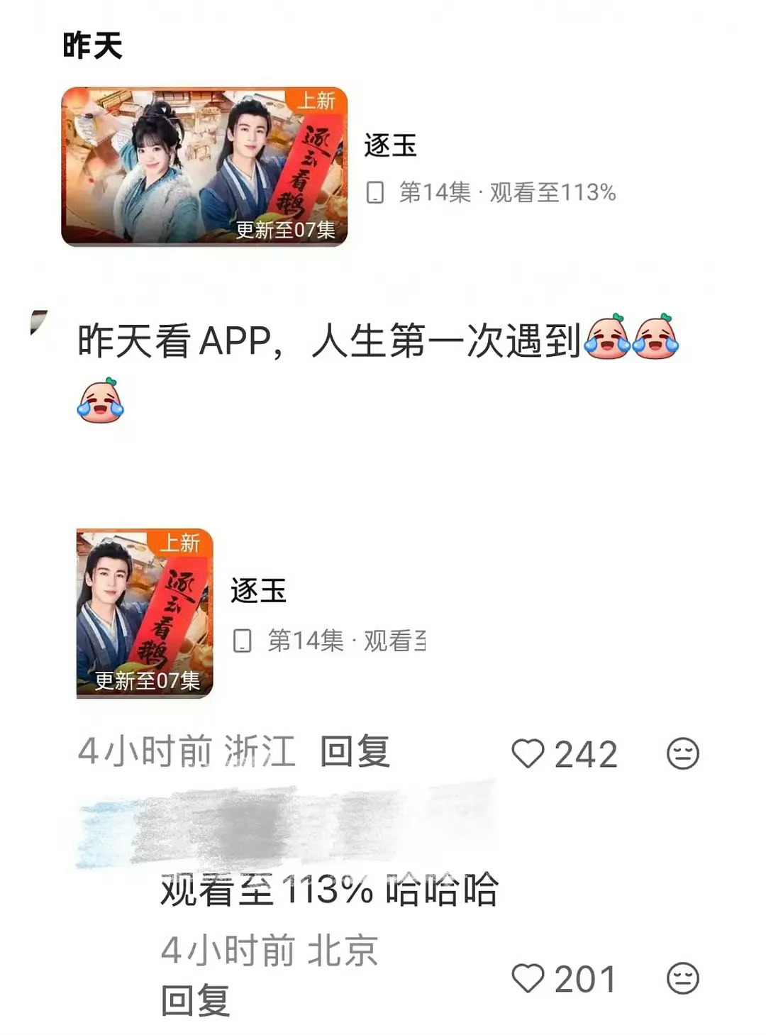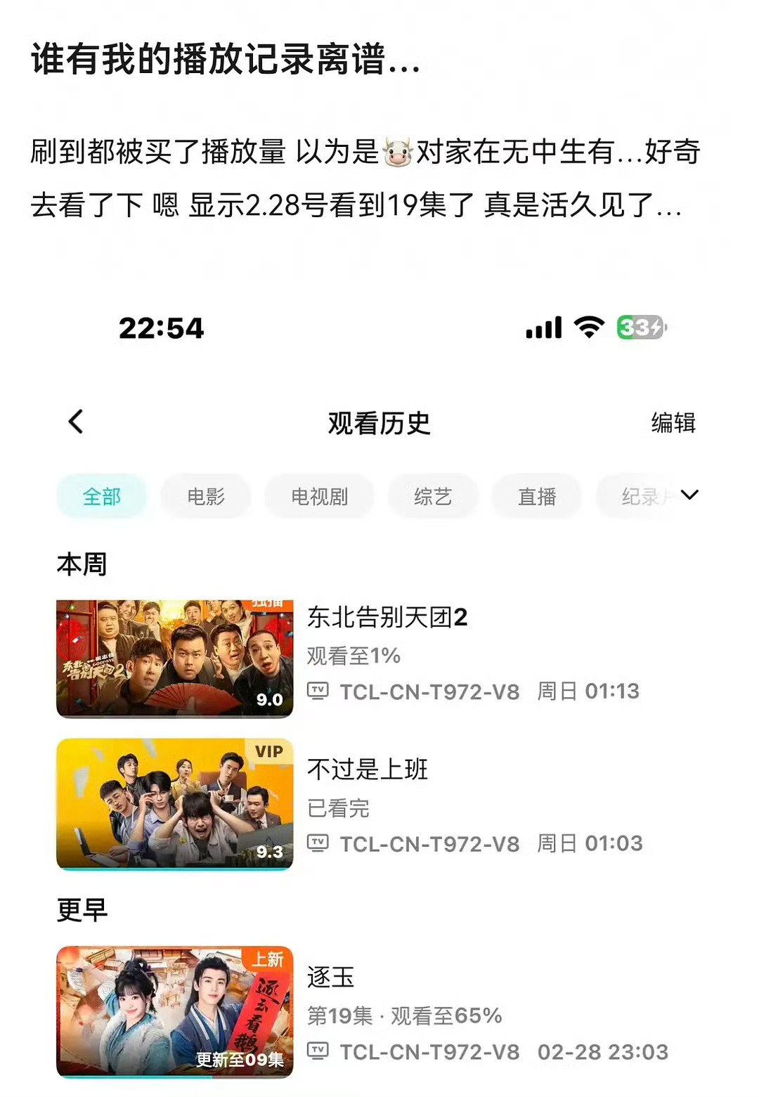 有网友的播放记录显示,2月28号就已经看了《逐玉》第一集(还没开播),然后现在已经看了14 15集(还没播到)