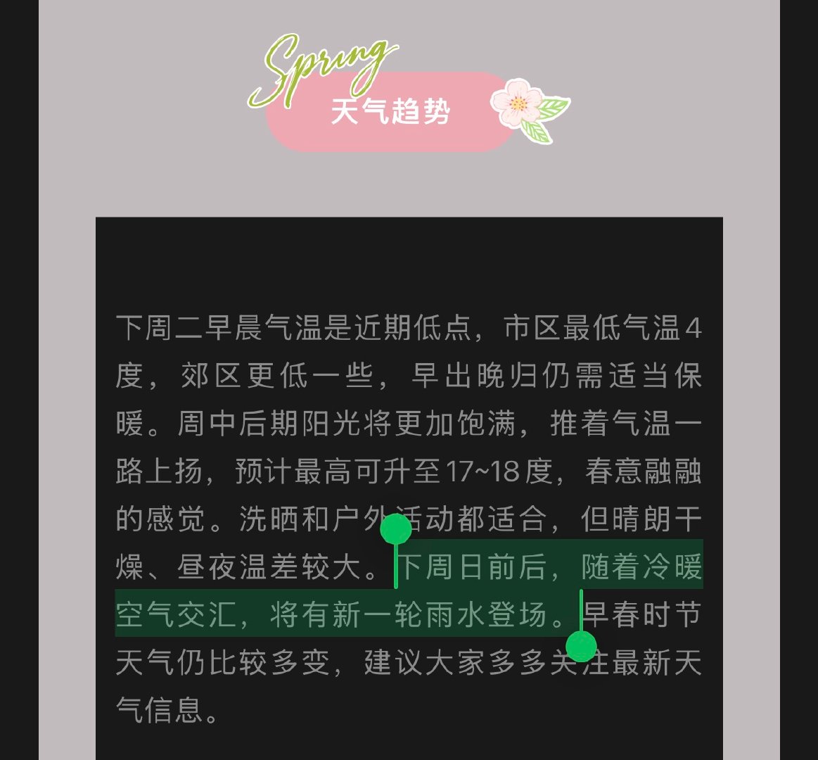 刚才更新的预报里维持了本周六气温高点,周日可能下雨+轻微降温的判断。range说