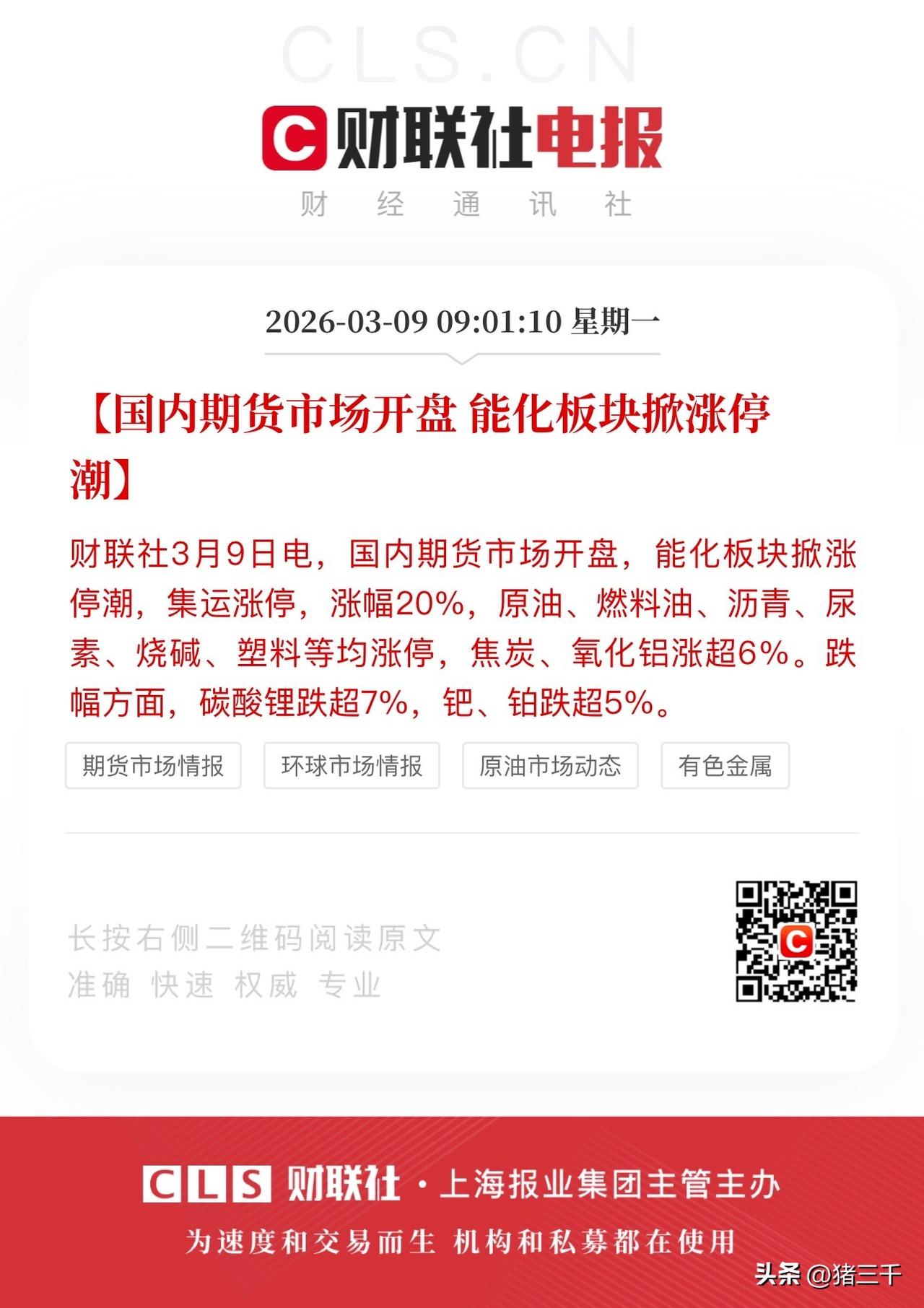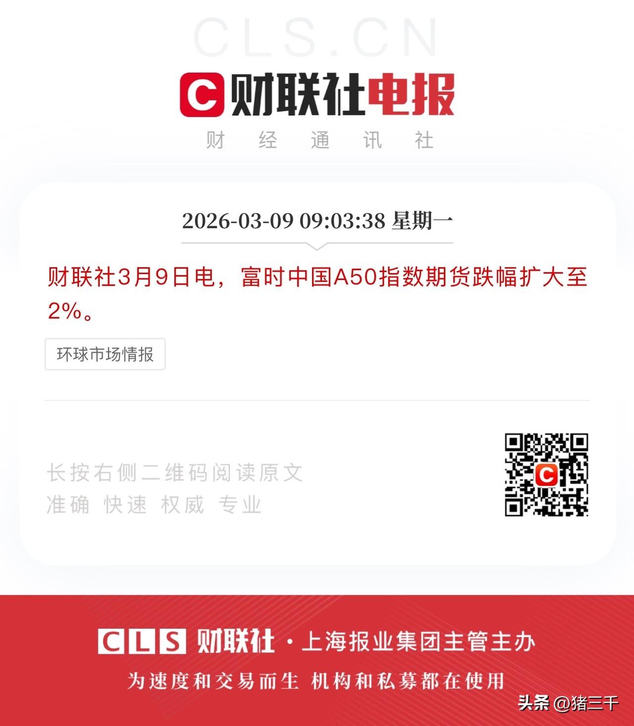 A股开盘做好应对半小时冲击的准备! 市场每一次因为战争的非理性下跌, 事后都证明是极端交易弯腰捡钱的机会。 当大盘发生系统性下跌时, 大部分发生在当日的交易都是毫无意义的, 折返跑、换筹都无济于事。 切换到受益战争题材的非常难把握的, 因为这个方向本质是押注, 押注都是五五开, 算是固定手续费实际上你是必输! 市场有风有雨是常态, 风雨无阻是心态! 记住发生非理性下跌, 手上有可用子弹的要敢打出去, 全年弯腰捡钱的机会可不多…