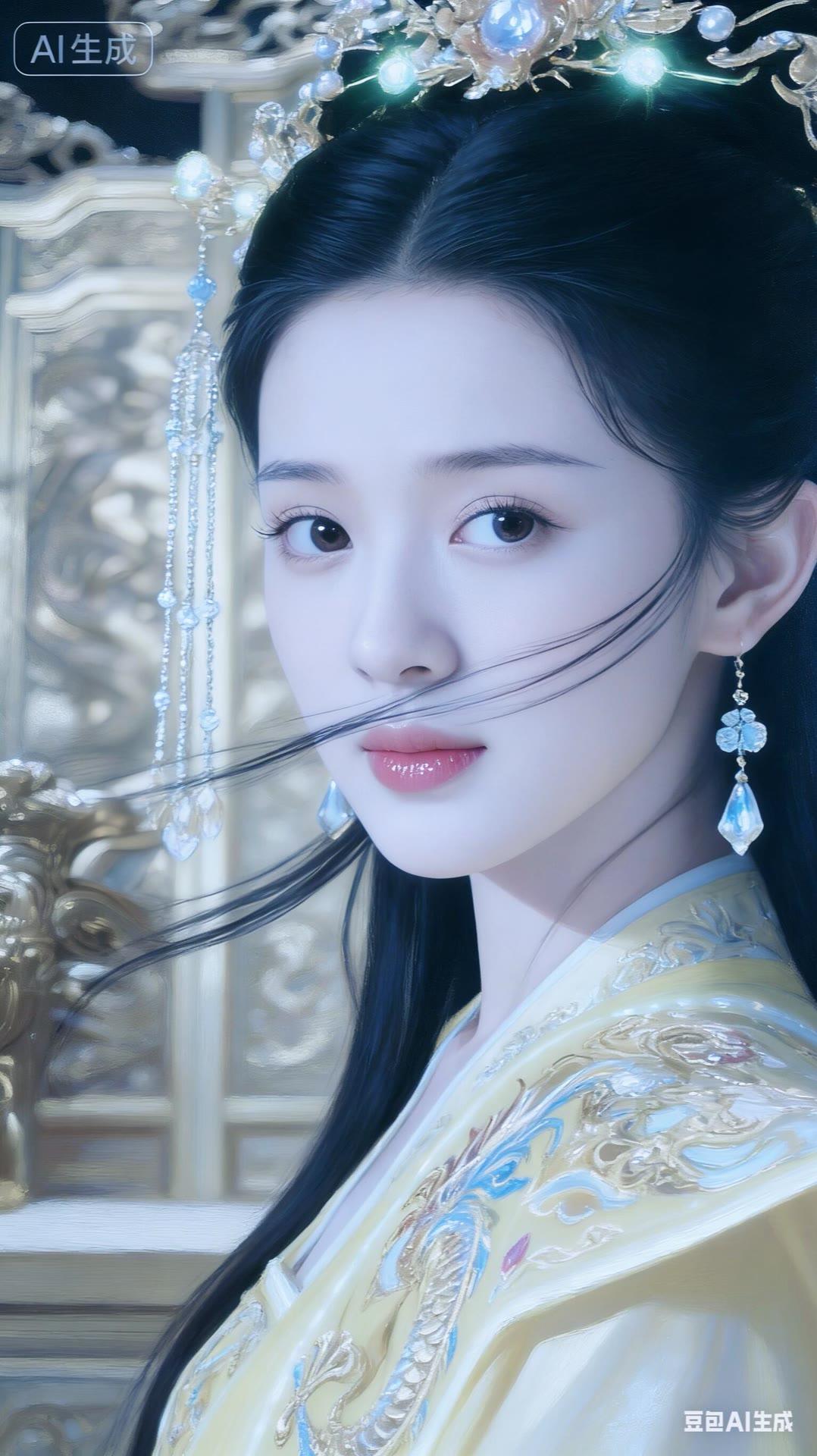 梦幻古风少女,银发如雪,花饰点缀,古典韵味十足。