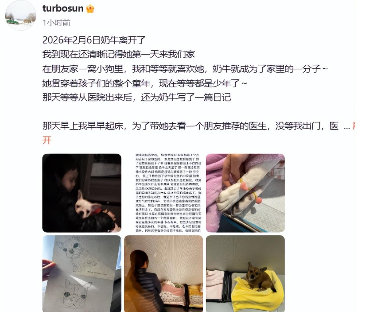 明星宠物去世上热搜:不必捧太高,也不必骂太狠 孙俪家小狗 “奶牛” 离世冲上热搜,有人感动,有人质疑。 其实这件事,中立看待最清醒。 它只是一条普通的田园犬。 能上热搜,不是因为狗多特别。 而是因为孙俪把它当家人,认真告别,真诚发文。 有人说:占用公共资源,没必要。 也有人说:太治愈,太好哭。 客观说: 明星也是普通人,有喜怒哀乐,有生离死别。 宠物离世难过、发文纪念,很正常。 能引发共鸣,是因为很多人都养过宠物,都懂那份不舍。 但同时,也不必过度神化、过度渲染。 这就是一件普通人都会经历的情感小事,只是发生在明星身上。 不嘲讽,不盲从。 不觉得是炒作,也不把它捧成多大的事。 热搜本就是人间百态。 有家国大事,也有日常温情。 只要不恶意炒作,不占用过多公共资源, 一份真诚的告别,值得被温柔对待。 你觉得,明星宠物去世上热搜, 是正常情感表达,还是过度娱乐化? 欢迎在评论区留下你的看法。