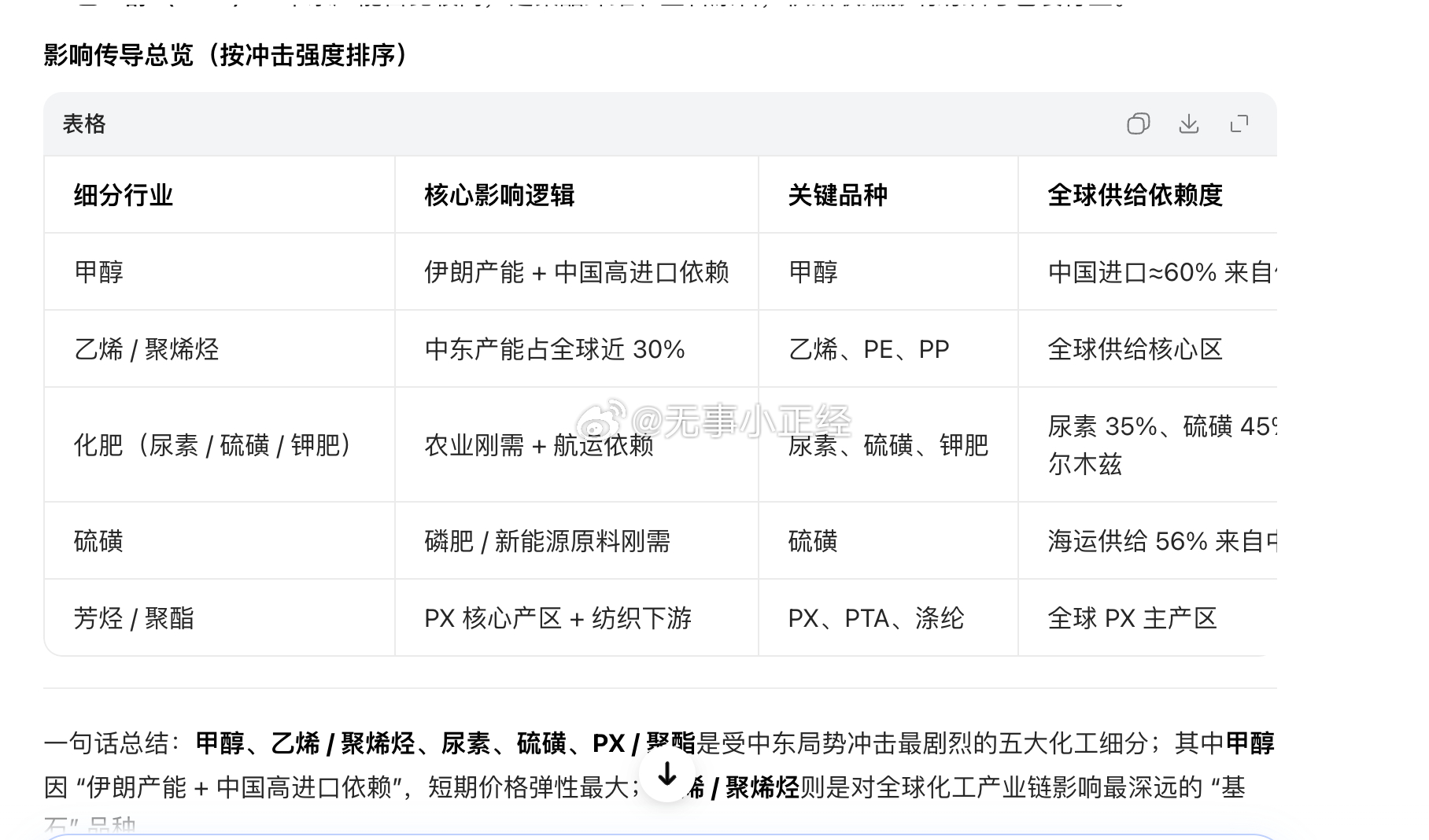 受中东局势、伊朗影响最大的几个化工细分行业