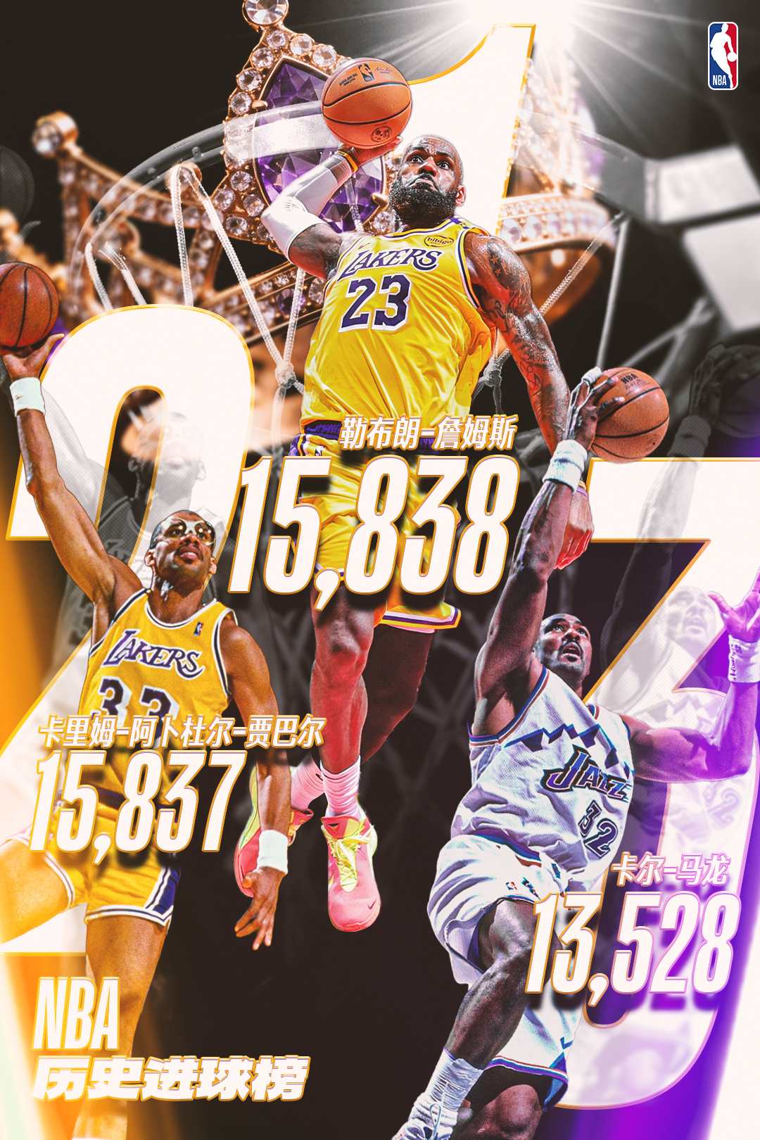 詹姆斯生涯进球数历史第一 历史第一!勒布朗·詹姆斯正式超越贾巴尔,加冕NBA生涯运动战进球数历史第一人!41岁,第23个赛季,总得分王+总进球王双料历史第一,传奇还在继续。