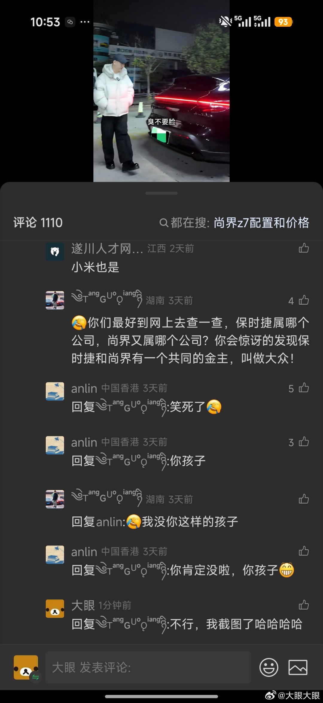 “你们最好到网上去查一查,保时捷属哪个公司,尚界又属哪个公司?你会惊讶的发现保时捷和尚界有一个共同的金主,叫做大众!”