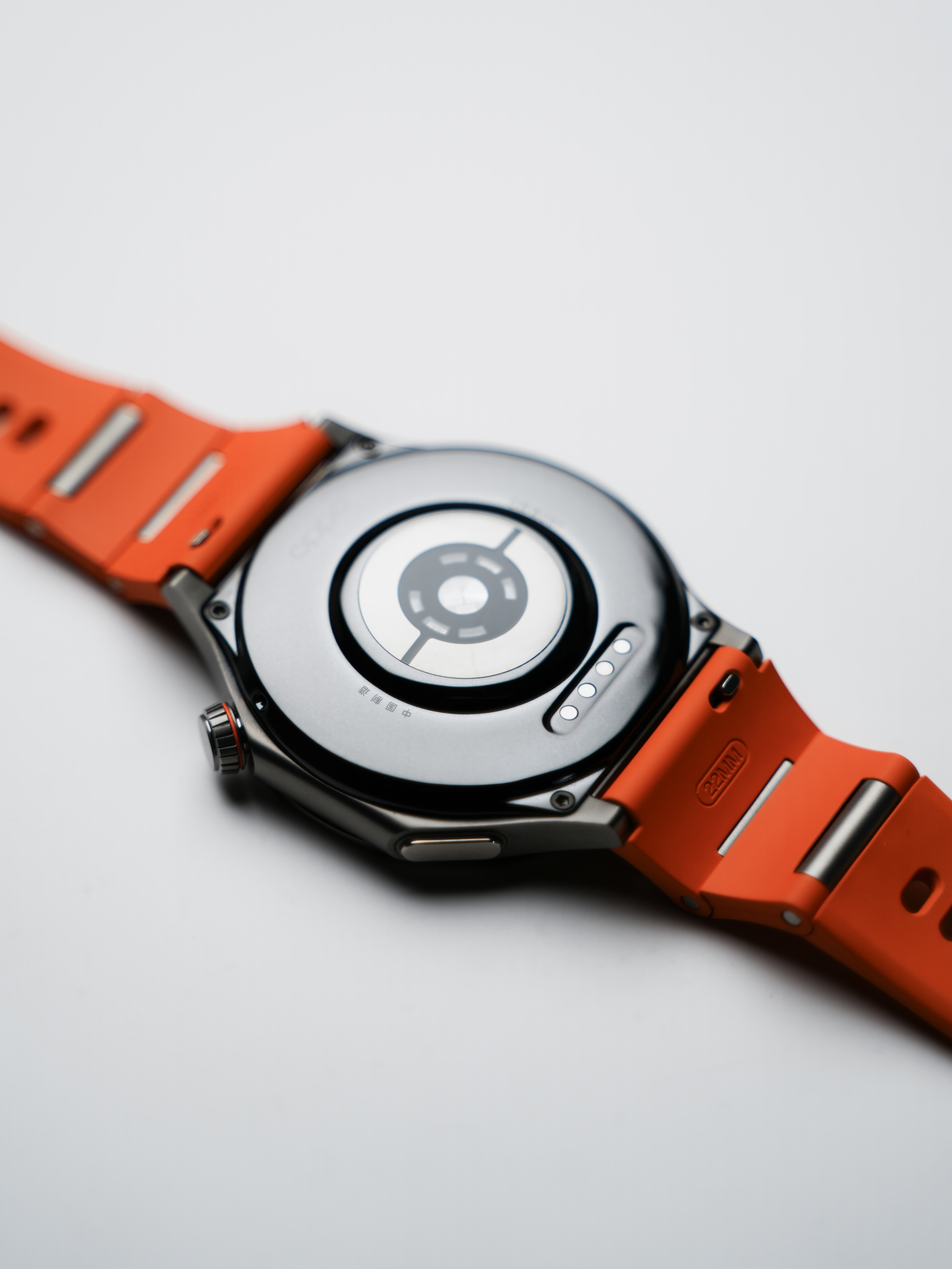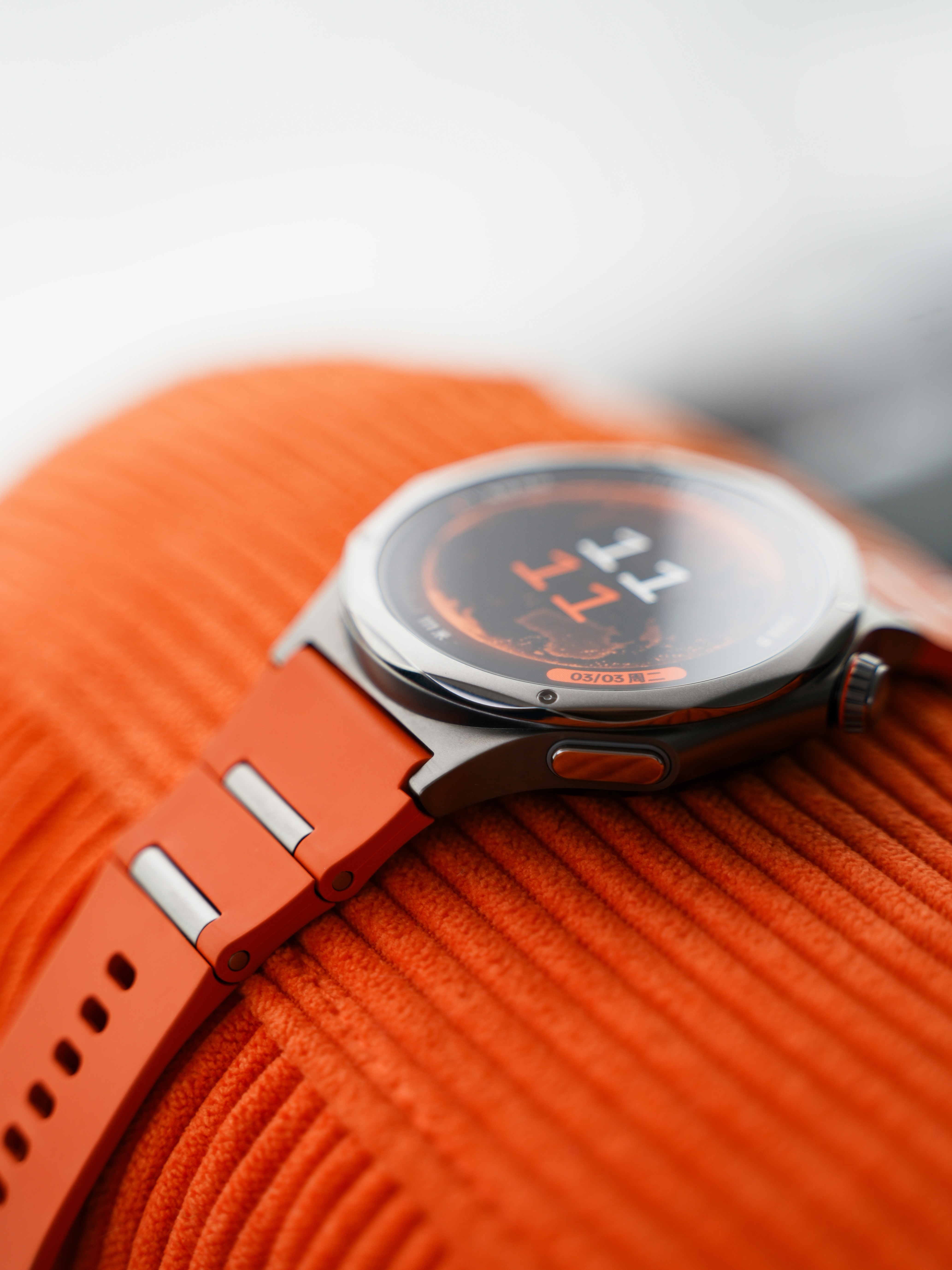 表壳整个采用的是航天级TC4钛合金材质,更耐刮了。表圈采用的是12边形切割钛合金表圈+柳钉设计,搭配上金属竹节表带,整个看起来很硬朗。表镜采用的是蓝宝石水晶,硬度仅次于钻石,十分耐造。相较于上代,厚度减少了6.5%,重量减少了13.5%,这代可以说有了更年轻的设计,和更好的手感。OPPO手表