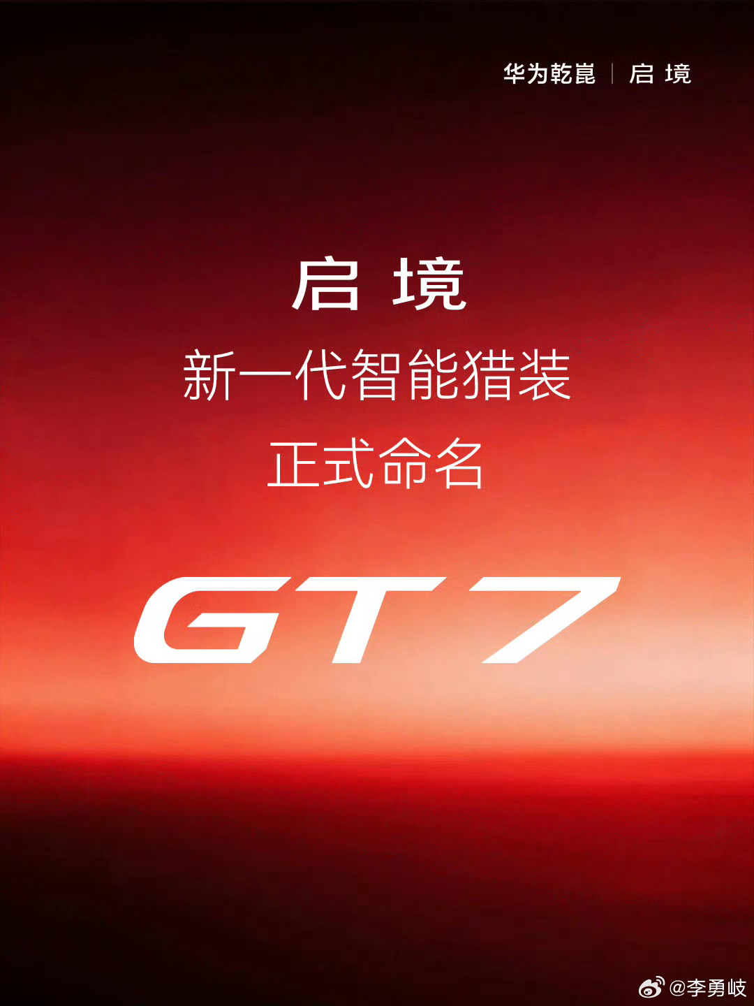 将于3月17日亮相/搭896线激光雷达!启境汽车旗下首款车型定名为GT7启境GT7 3月9日,我们从启境品牌官方了解到,旗下首款车型正式定名为GT7并将于3月17日完成亮相。根据此前介绍来看,其将搭载896线激光雷达、HarmonySpace鸿蒙座舱以及HUAWEI XMC数字底盘引擎。值得一提的是,新车由广汽与华为合作打造,将在6月份完成上市。根据此次官方发布的预告图来看,其采用猎装轿跑设计风格,预计沿用当下新能源车型惯用的封闭式前格栅,搭配狭长灯组,让其有着不错的运动感。同时,该车针对前后大灯组内部以及翼子板处加入智驾小蓝灯配置。据悉,新车将搭载华为数字底盘引擎,车辆将实现更灵活智能的驾控表现。新车还将搭载华为乾崑新一代高阶智能辅助驾驶系统,硬件支持L3级架构,待法规成熟即可释放更高阶辅助驾驶能力。大家期待吗?