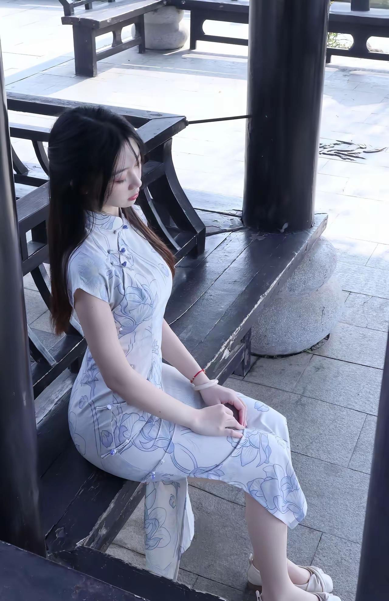 青衣美人坐,静听风声起。