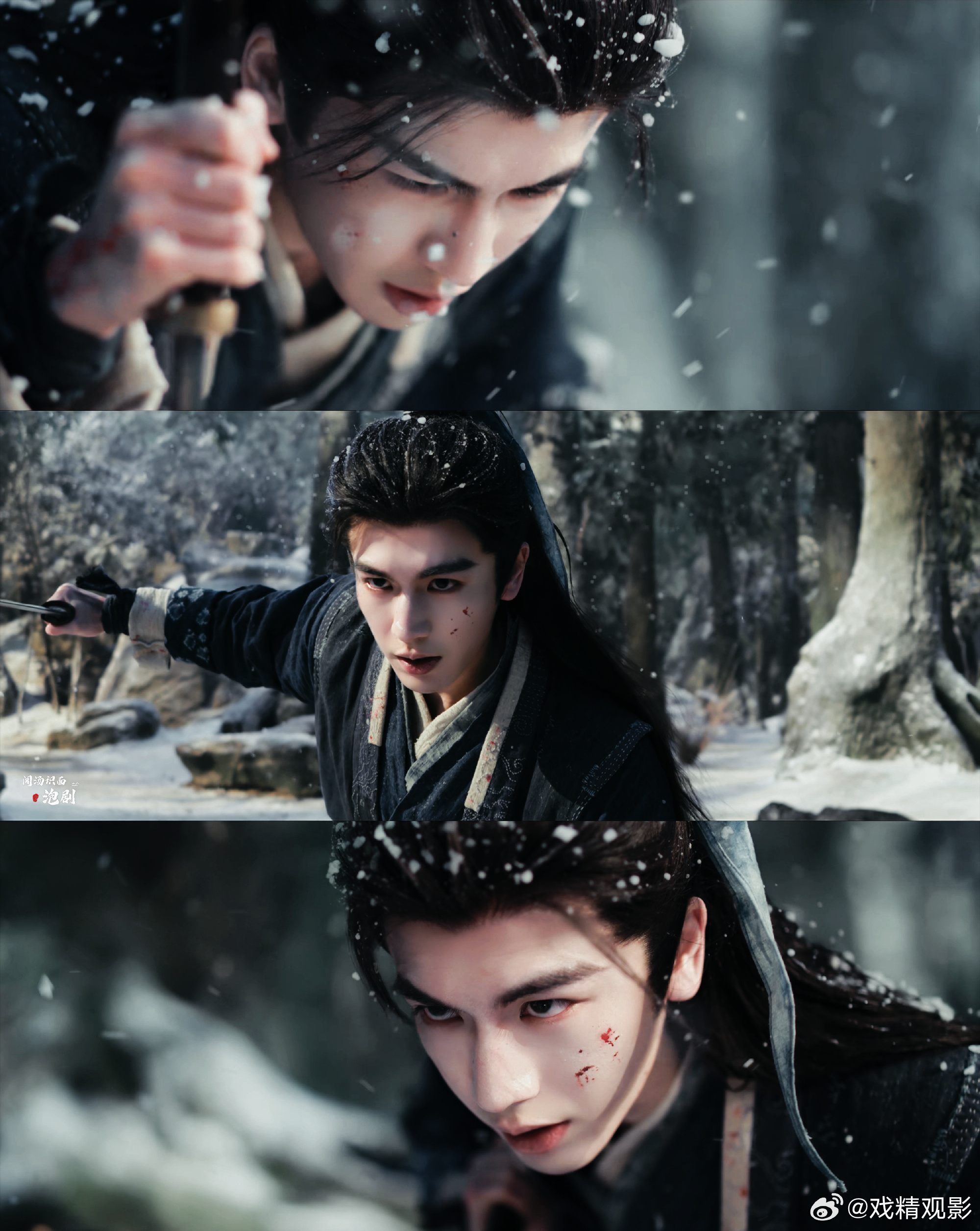 张凌赫人生镜头 雪地战损挥剑,咳血颤抖仍藏锋芒,自设雉鸡翎飞扬,破碎感与战神气魄交织,每一帧都值得珍藏。
