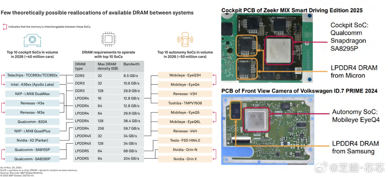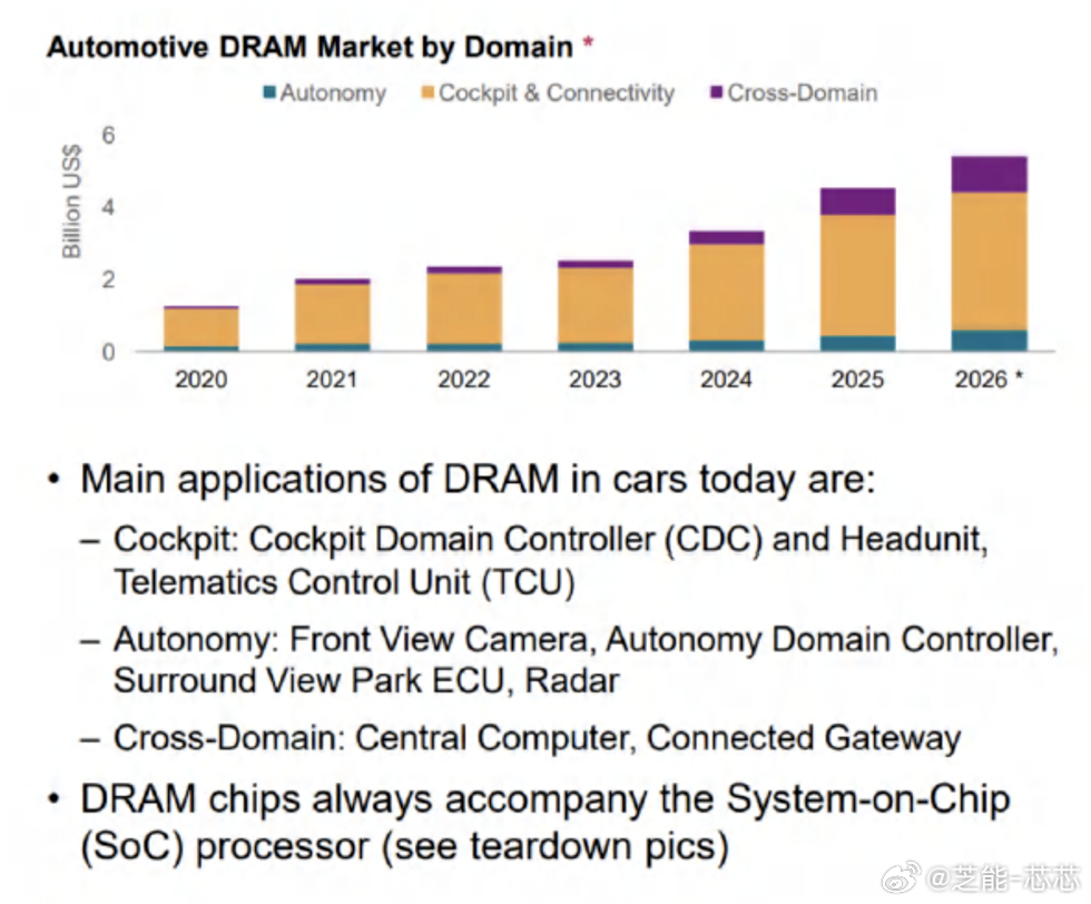 随着座舱与智驾算力提升,单车内存需求大幅增长,而头部存储厂商将产能集中投向高利润的 AI 服务器,车用 DRAM 供应收紧、价格上涨。