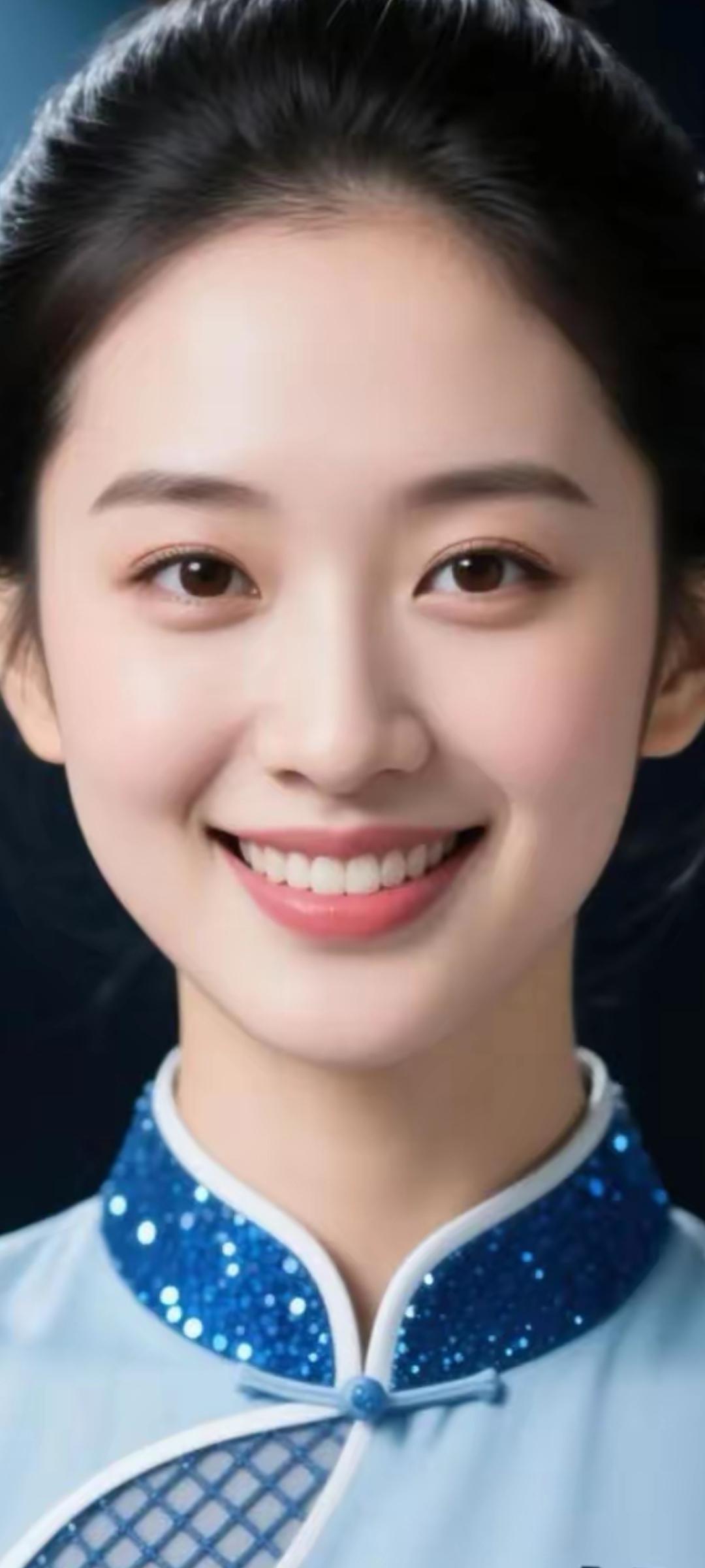 甜美笑容,蓝衣少女,青春洋溢!😊✨