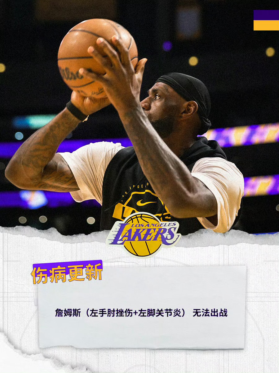 官方给出老詹是左手肘和左脚关节炎,所以无法出战。|nba