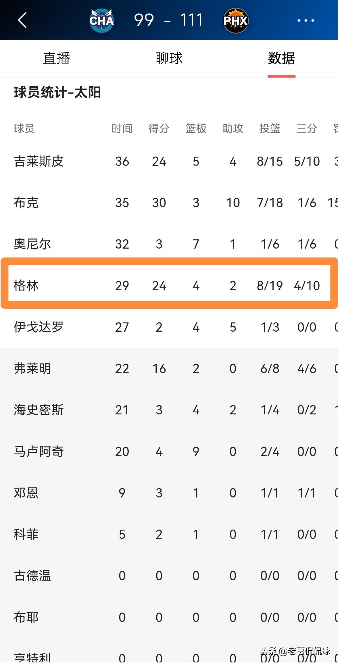 太阳球星杰伦-格林终于让那些质疑者闭嘴了!在今天太阳主场以111:99战胜黄蜂的