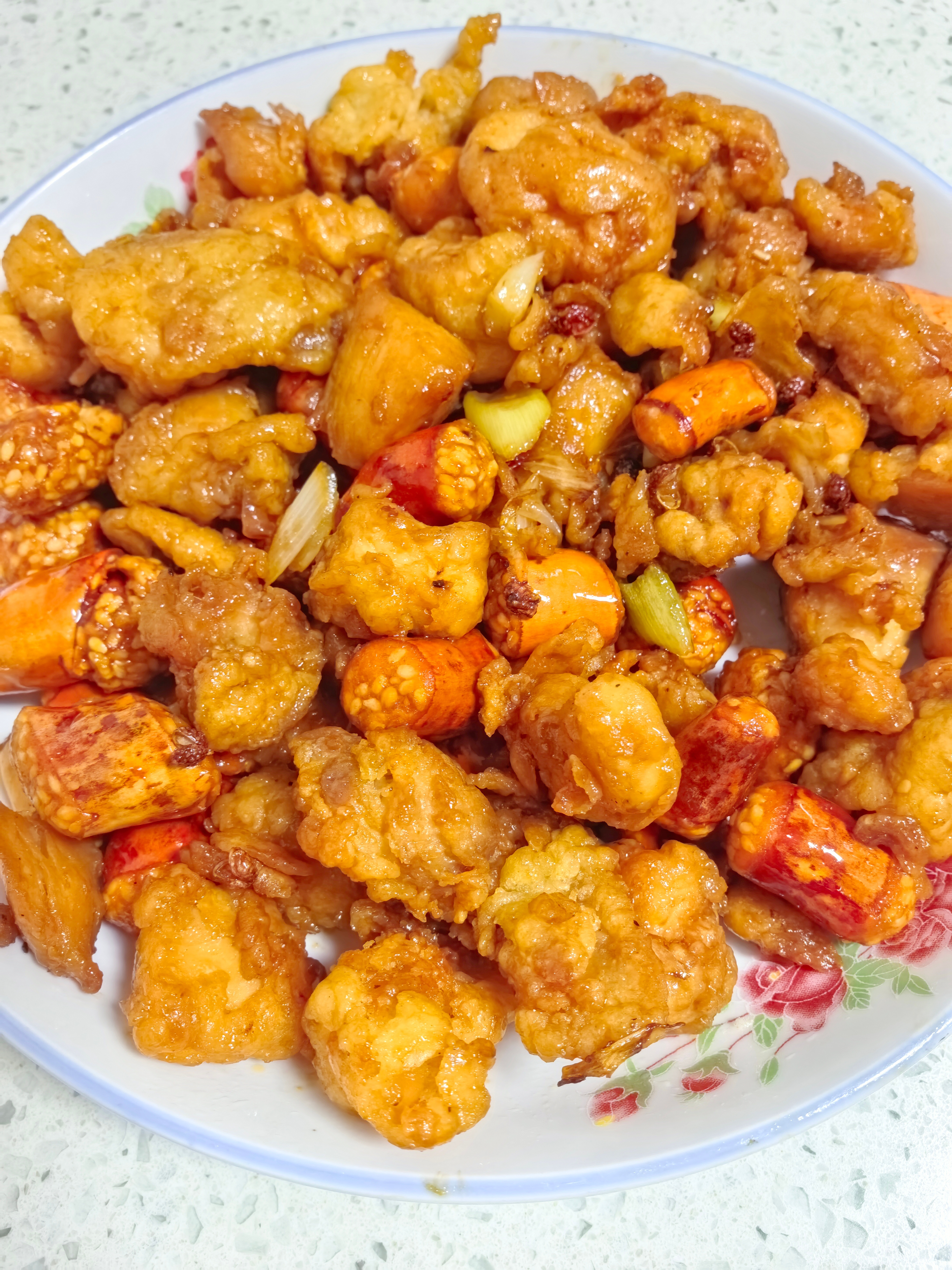 昨天又一次尝试做辣子鸡块味道有了,就是这鸡肉不如外面的外焦里嫩~