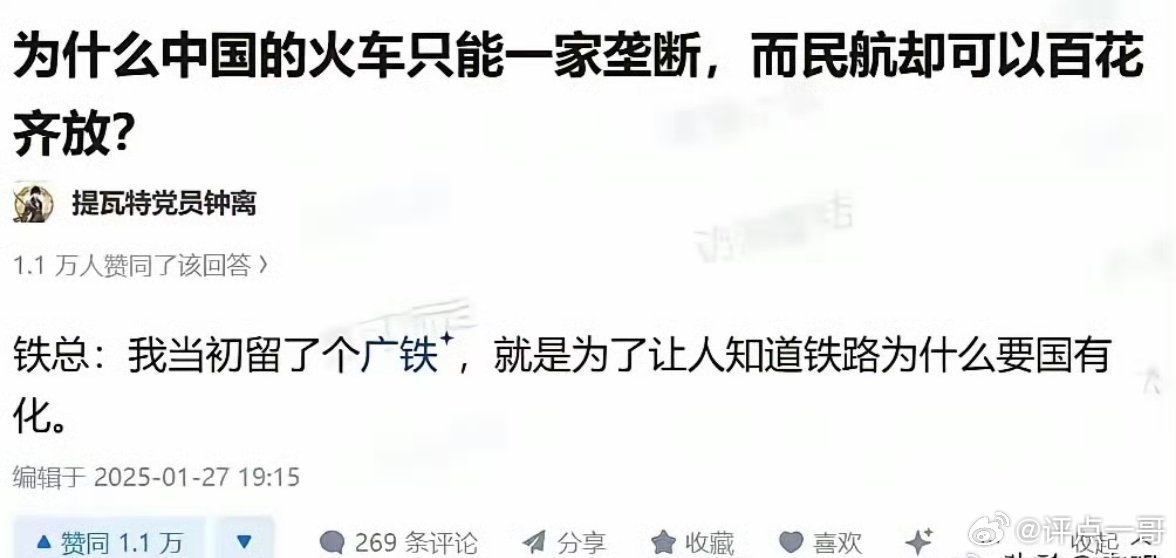 鼓吹铁路私有化的看过来,不是没给你们机会
