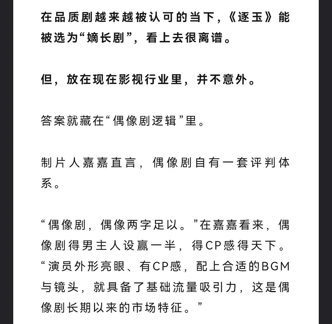 制片人贴脸开大说古偶看脸和cp感就够了 制作和剧情可以忽略