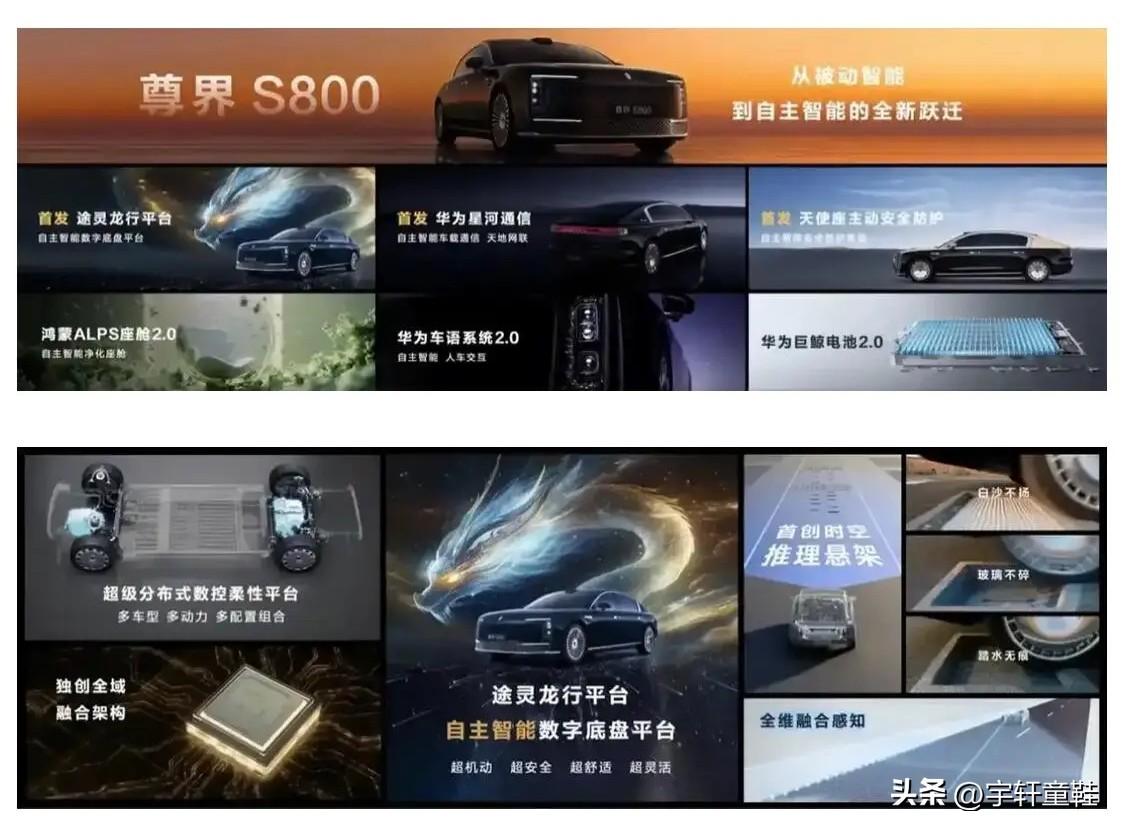 论营销还是华为啊!比亚迪在面前真的被秒成渣了! 就拿下面的图一跟图二来讲,图1为华为系尊界S800发布会技术汇总图;图2为比亚迪最新二代刀片电池+闪充技术发布会汇总图。 图1:用户几乎不用理解,直接看字面意思就觉得牛逼,途灵龙行底盘、星河通信、时空推理悬架,也适合吹牛! 图2:一堆数字,主要是大部分买车的都不懂,吹牛的时候讲一大堆数字,讲给谁听呢?