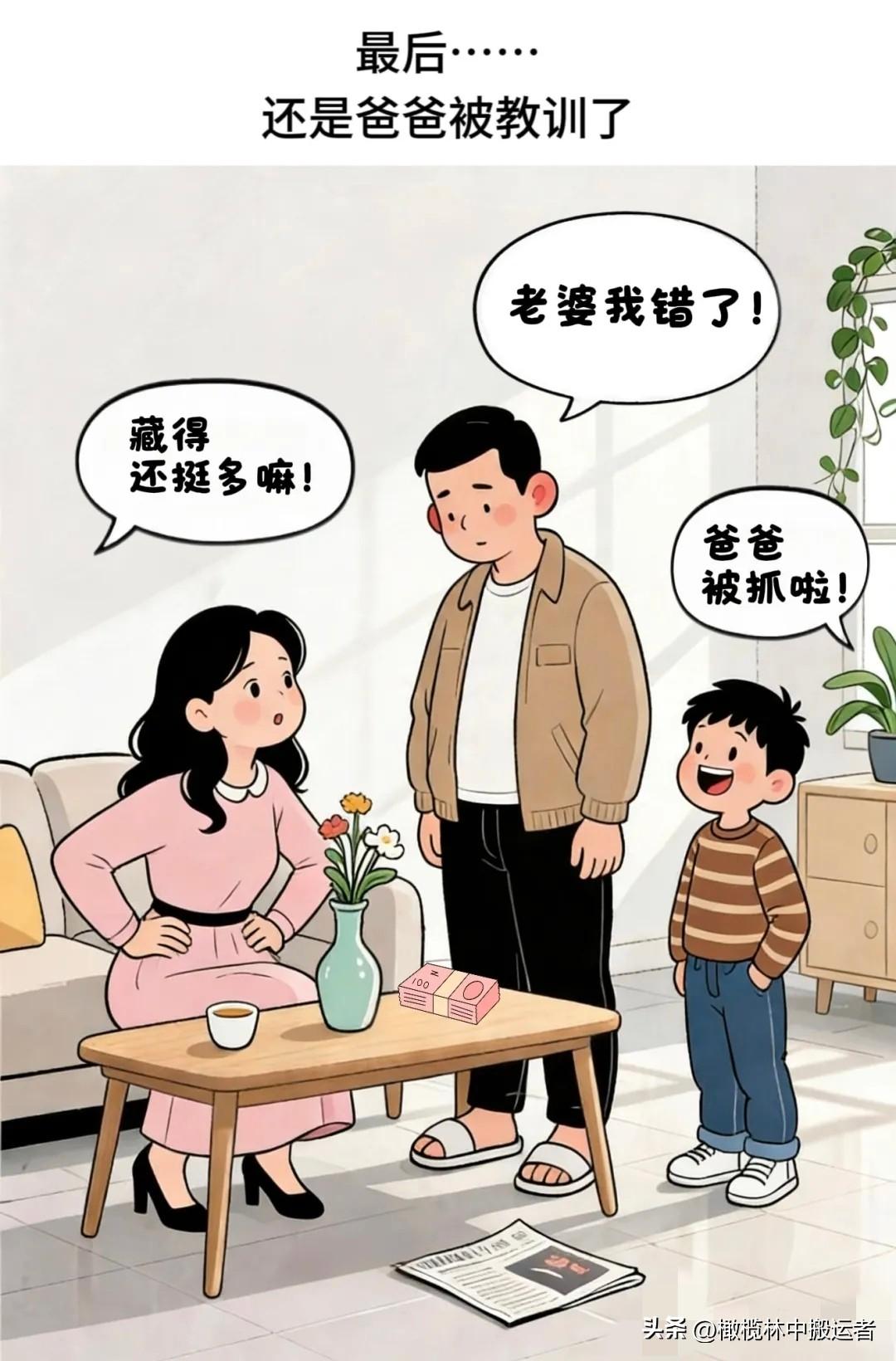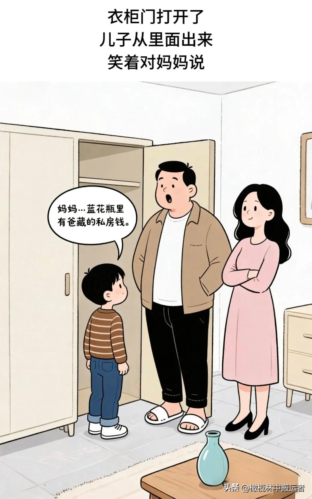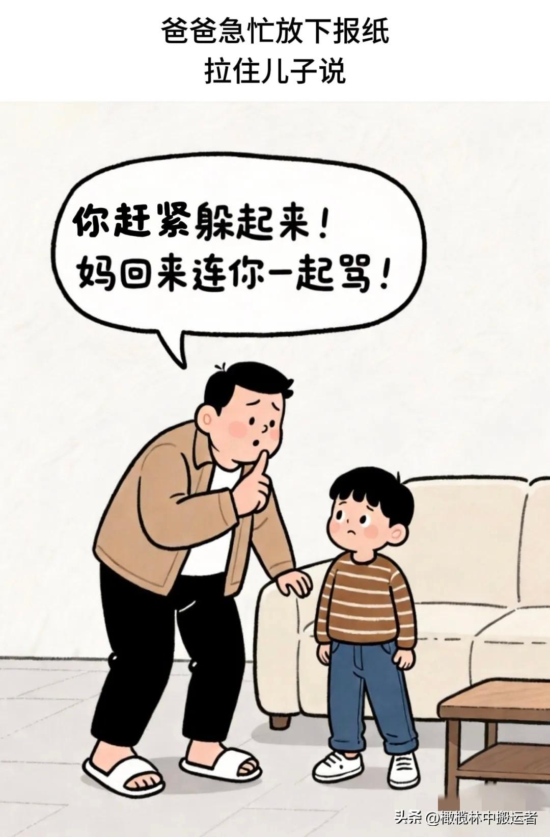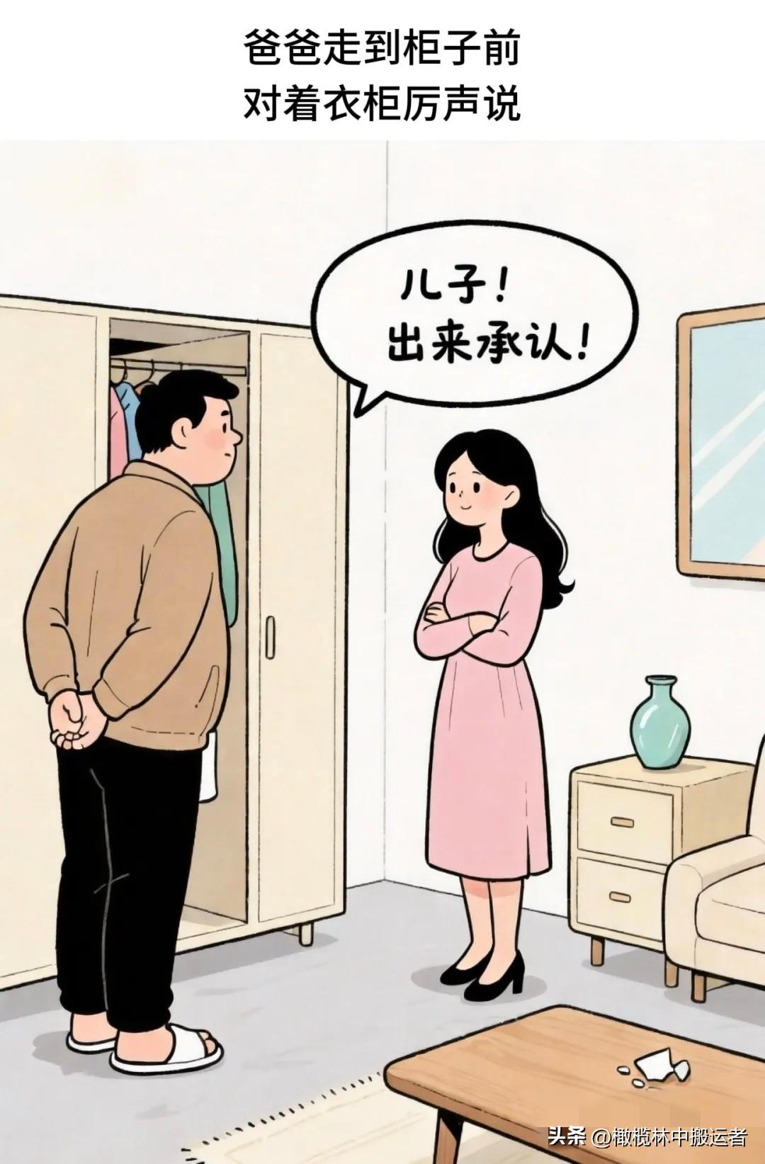 开心一刻:儿子:爸!你把妈妈最宝贝的花瓶弄碎了?爸爸:别出声!赶紧找地方藏好!你妈回来见你在这儿,保准连你一块儿数落……
