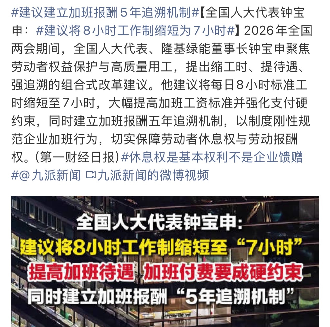 建议将8小时工作制缩短为7小时建议先把那些大小周和单休的企业整顿明白了,再提8小时的问题。