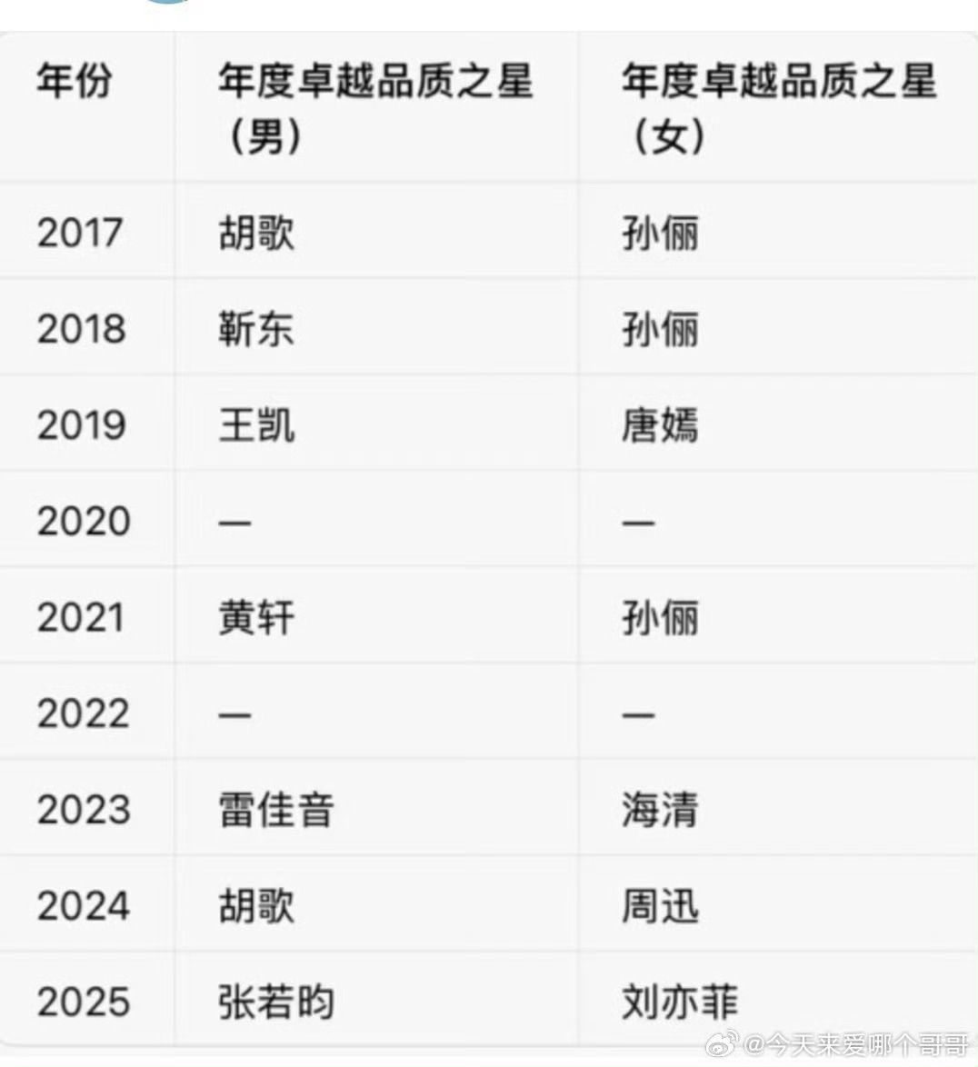 历届电视剧品质盛典年度卓越品质之星