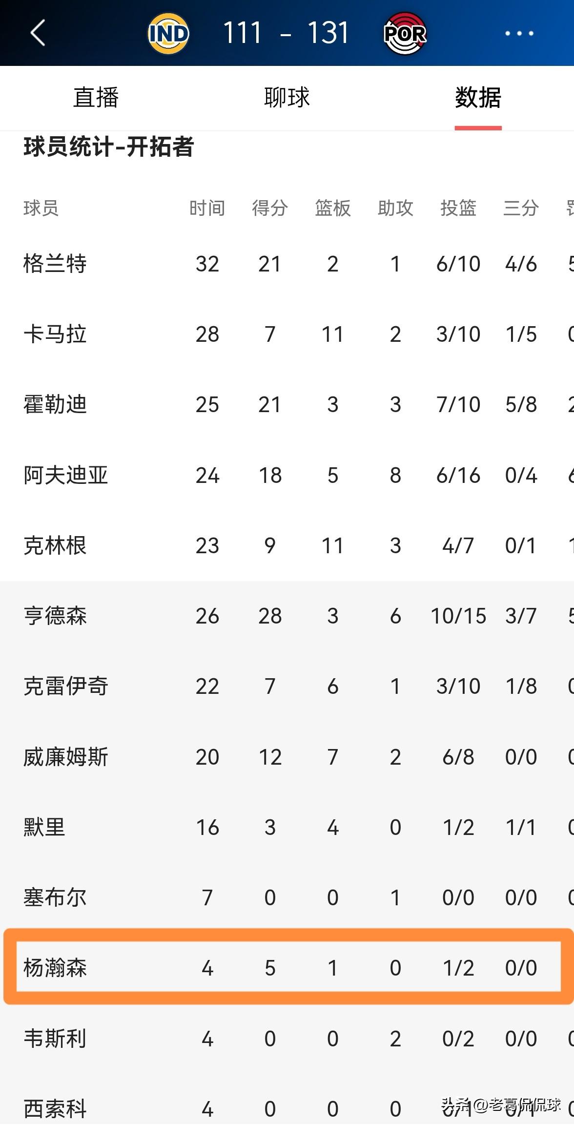 杨瀚森工作室真是太会来事了!在今天开拓者主场以131:111轻取步行者的比赛中,