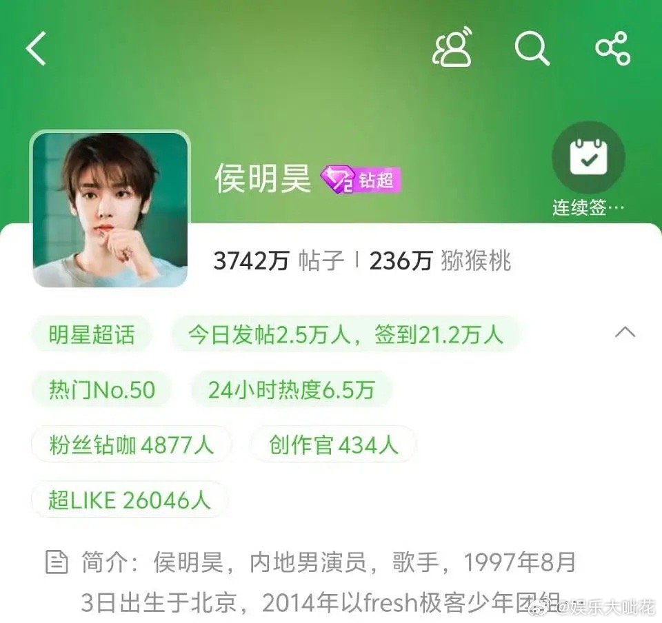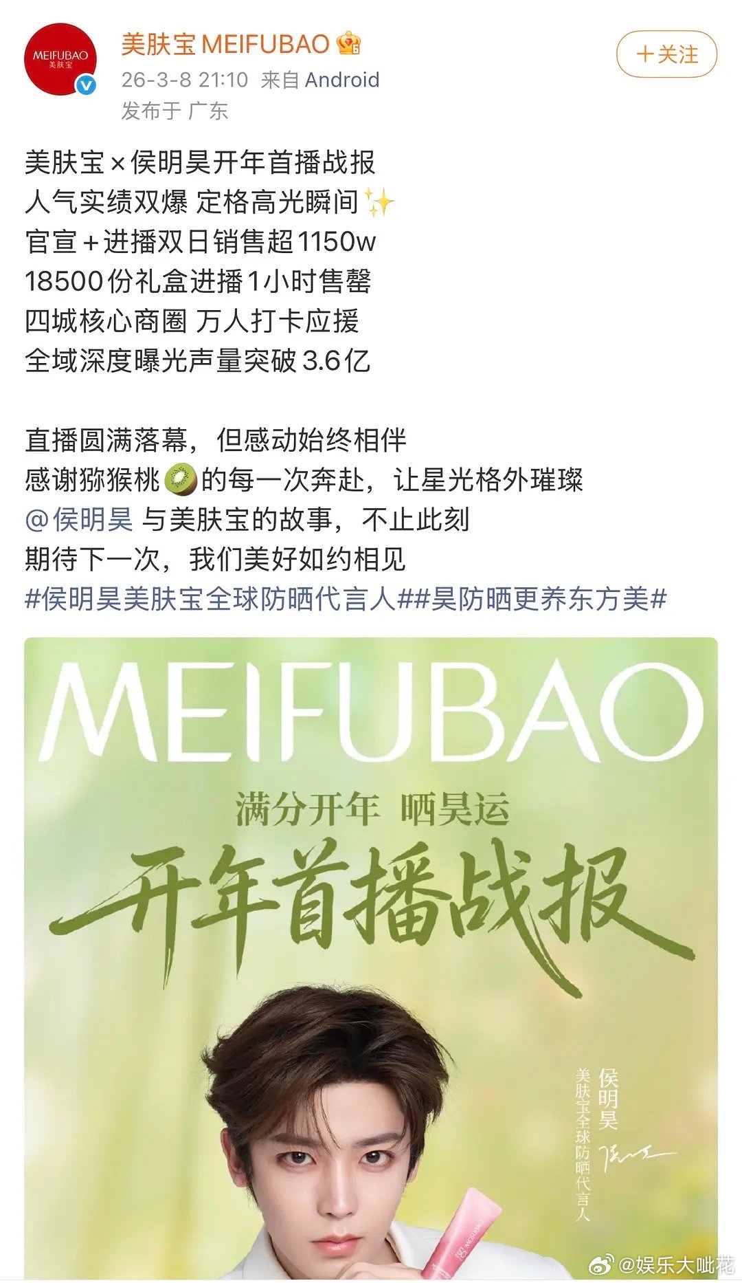 理讨侯明昊现在流量什么水平?商务战报破千万,超like破2.6万了感觉稳稳上坡路