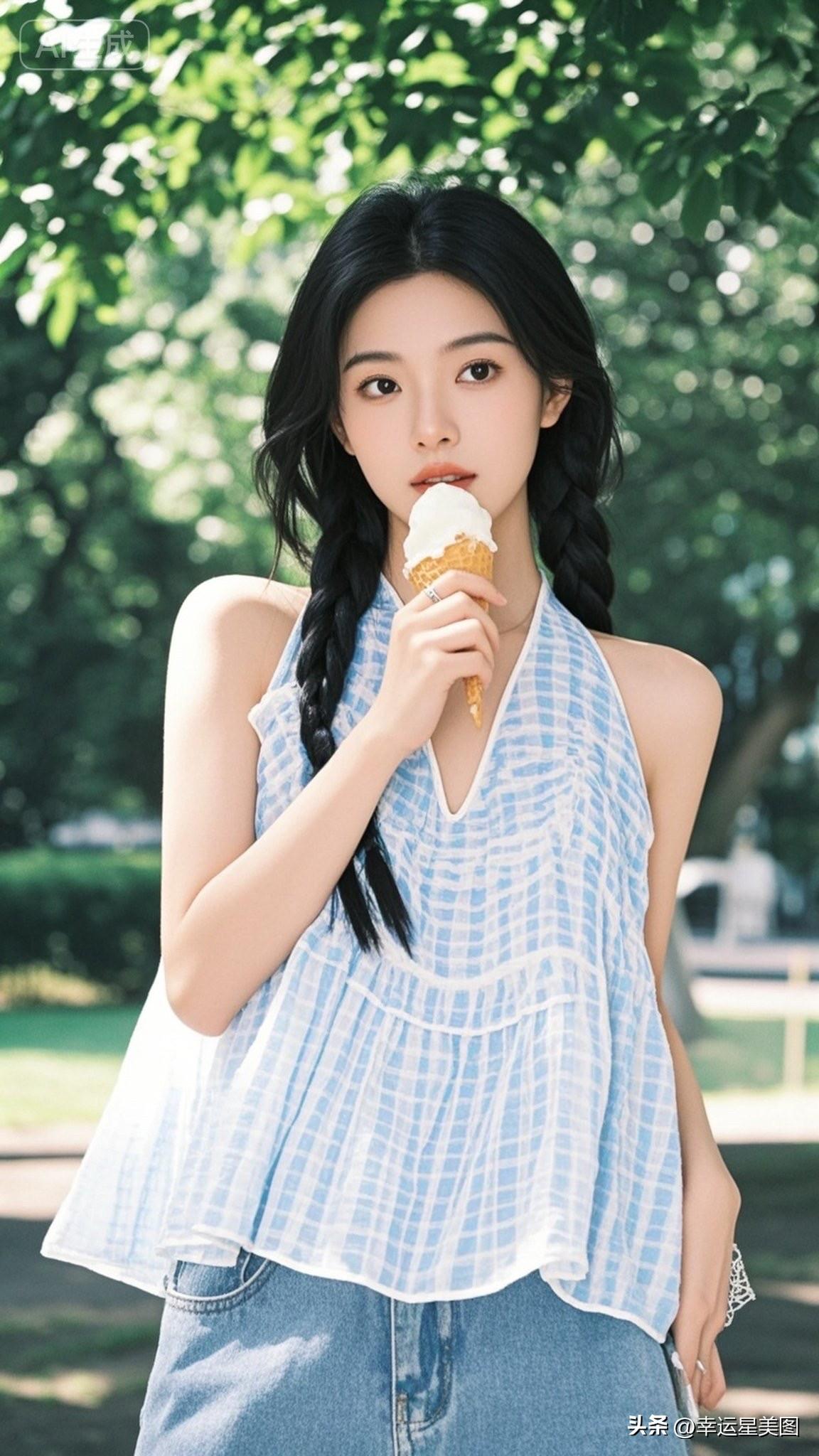夏日清凉时光,冰激凌与女孩的完美搭配!🍦🌞