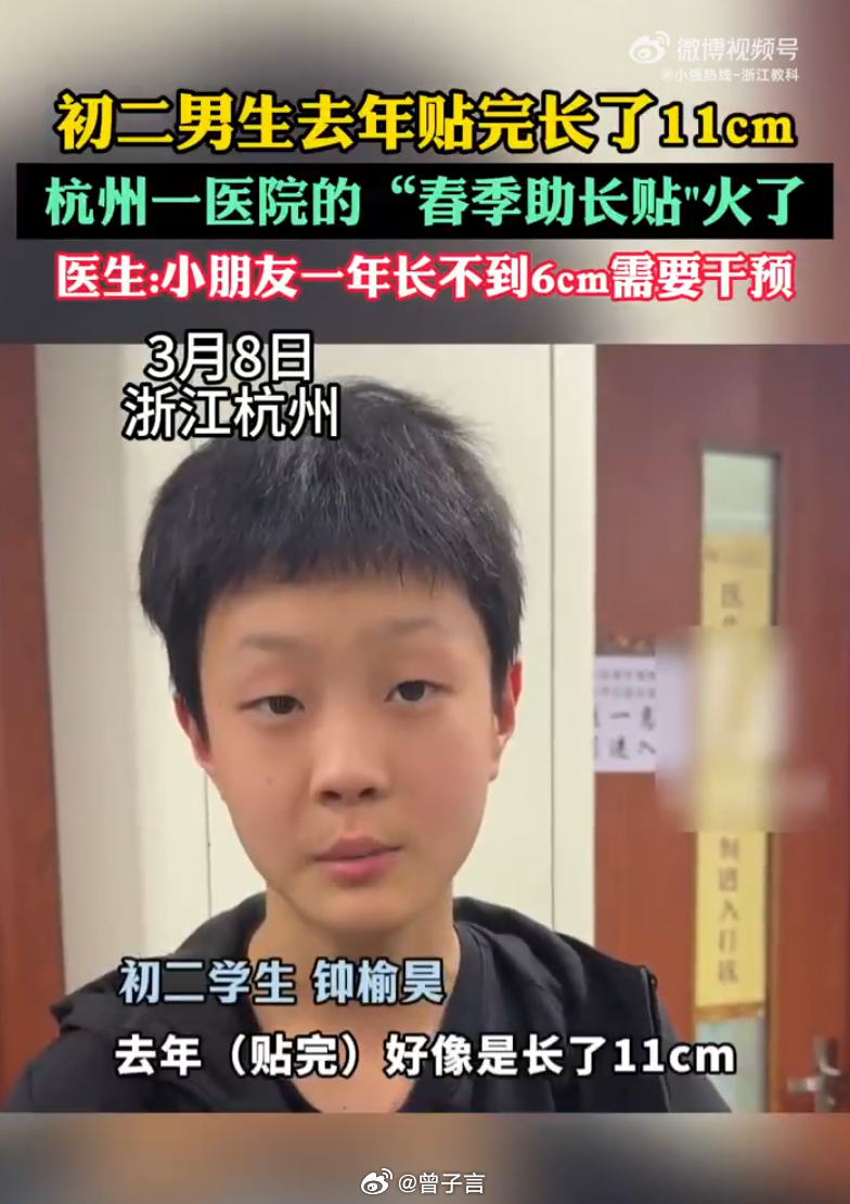 杭州初二男生贴助长贴一年长高11厘米