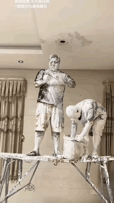 笑不活了,大家看他们俩像不像美以,这俩大哥明明不会抹墙,非要硬上,结果弄了一身白灰,活脱脱一个抹墙版美以伊大戏。 一个站在高处瞎比划,弄的浑身是灰,还装模作样,像极了美国,明明不懂中东局势,非要到处插手,把局面搅得一团糟,自己更是一身狼狈。另一个比他矮点,与他并肩站着,同样瞎忙活,也是越抹越脏,像极了以色列。关键是他们俩抹上去的大白根本挂不住,好多都掉这俩大哥嘴里了,真叫一个埋汰。