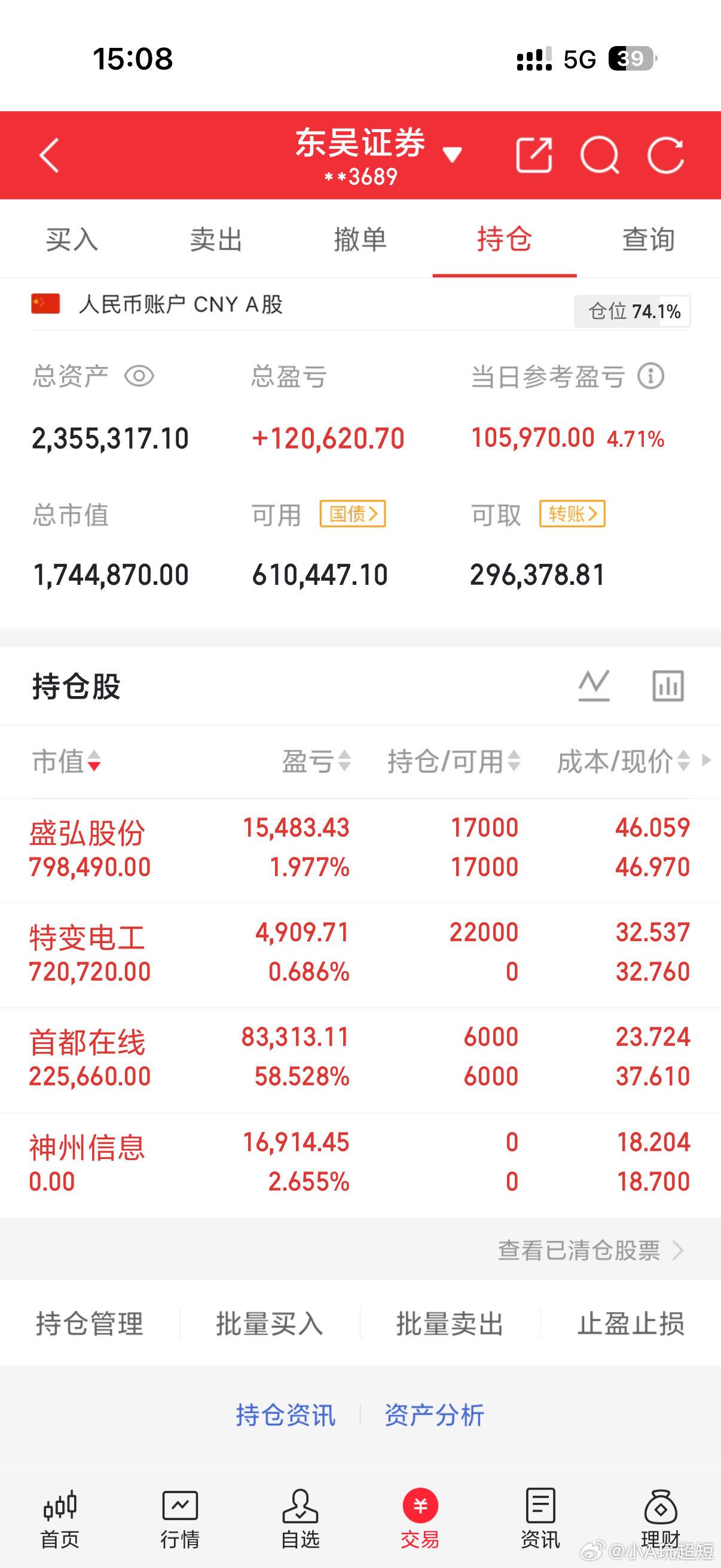 入:特变电工持:首都在线/胜弘股份出:神州信息特别声明:这只是小A个人的操作记录,不作为任何投资建议!