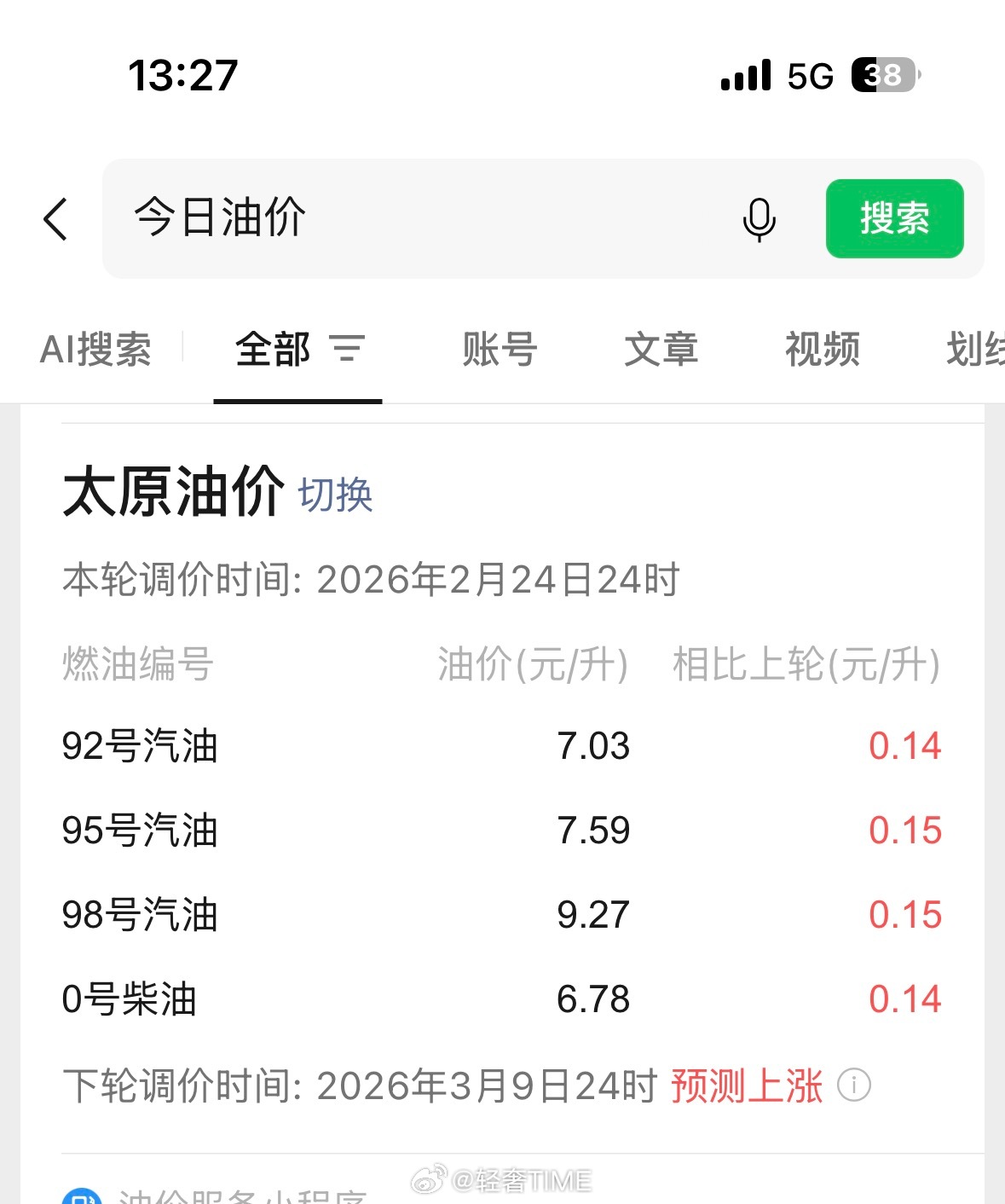 油价涨爆了虽然我平时开电车,但是也会关注油价,看看自己省了多少也就是春节期间,我还搜索过,很多加油站优惠后5元多一些,现在92均价已经7元左右了