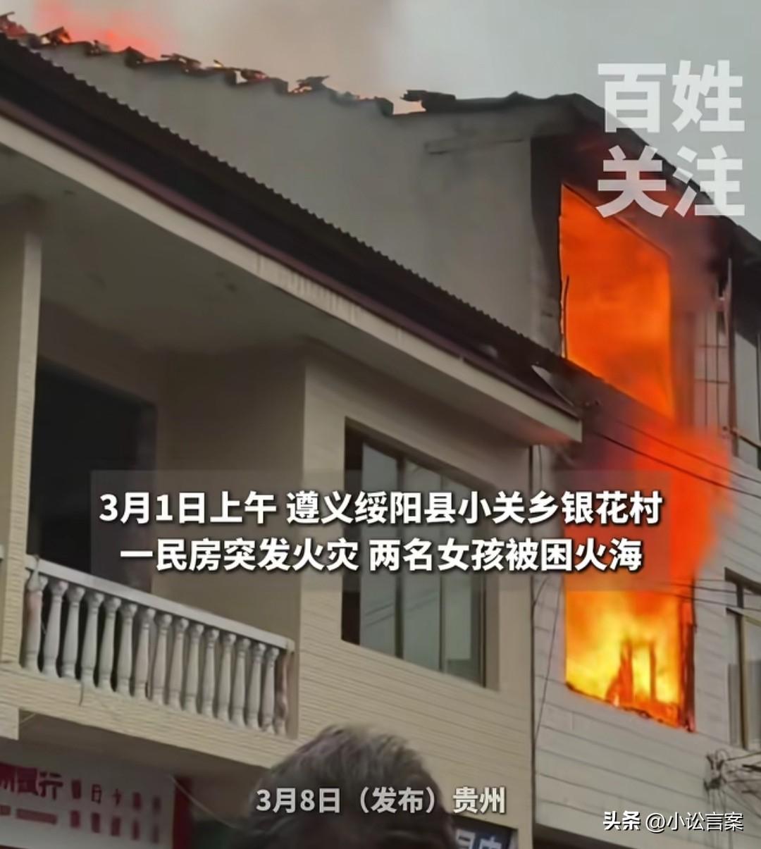 太惊险了!贵州罗良勇火场大喊,让女孩跳楼时,16岁双胞胎妹妹身体已经开始烧伤。一跃而下后,车顶被砸个坑,罗良勇身体多处受伤住院,女孩却没有大碍。 事情就发生在不久前的3月1日下午,起火的是贵州绥阳下辖乡镇的一处民房,看样子有些老旧,应该修建有些年头,只是不知道为啥起火。 只见烈焰滚滚、浓烟升空,令人揪心的是,大火中有一对16岁的双胞胎姐妹被困。姐姐在一楼,营救稍微容易,妹妹在二楼,大火早已封住了下楼去路。 眼看悲剧即将发生,简单了解完现场情况的罗良勇当机立断,大喊着让女孩从二楼跳下来,自己在下面接住她。 彼时除了罗良勇外,还有热心小伙廖飞。大火已经烧到身后,女孩背部开始灼伤,她不再犹豫,鼓起勇气一跃而下,果然被下面的两位好心人接住,身体并无大碍。 可罗良勇却受伤了,他额头当场被砸出血,胸椎、脊椎骨折,目前扔在医院治疗。 自由落体下坠产生的冲击力,能量非常巨大。一个鸡蛋,从4楼抛下,就能将人身体砸成肿包,16岁女孩身材体重接近成人,罗良勇和廖飞二人敢这么做,完全是出于内心善良,冒着生命危险。 从细节处也可以看到,女孩跳下时,身体局部刚好碰到车顶,小货车车顶处立刻凹陷下去。 不管是继续被困火场,还是跳下后就这么重重掉到坚硬地面,女孩的后果都是不堪设想! 人间自有真情在,当别人出现危难时,总有那么多正义善良的人愿意伸出援助之手,甚至不惜自身安全。 让我们为罗良勇和廖飞点赞![赞][赞] 水火无情,同时也提醒所有人要注意用火用电安全,莫让自己忽视演化成巨大悲剧…… 【来源:百姓关注】