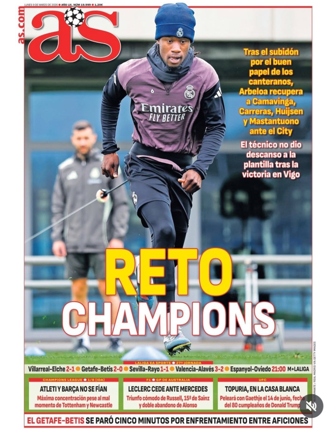皇马 《阿斯》欧冠挑战对阵曼城,阿韦罗亚让卡马文加、卡雷拉斯和马斯坦托诺复出战胜塞尔塔后阿韦罗亚没给球队放假休息