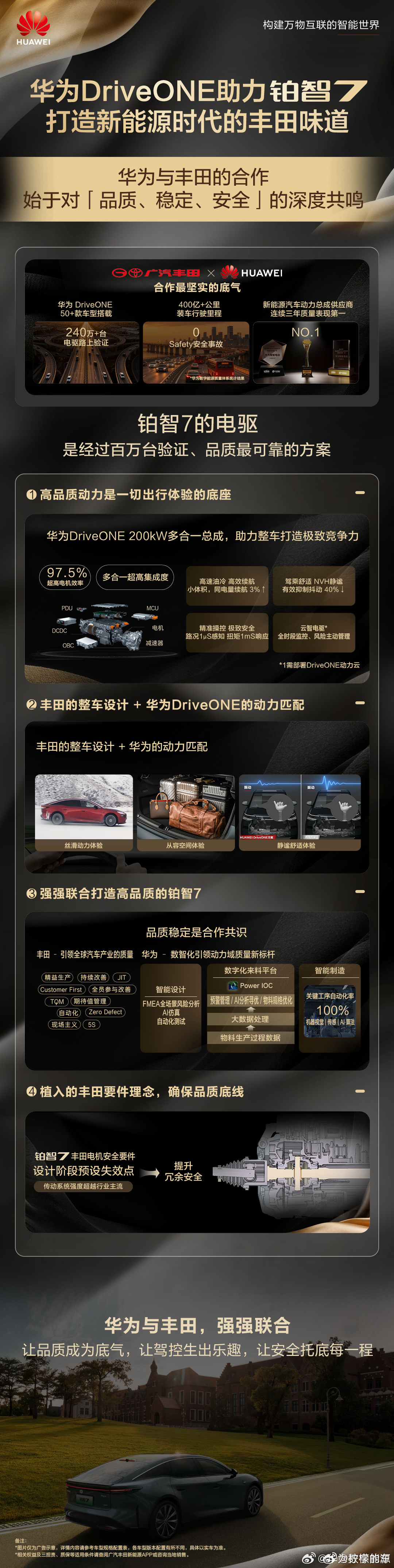 有一说一,丰田这次真没喷点。铂智7预售15.68万起 全系华为DriveONE电机22000rpm+97.5%效率......要动力有动力,要效率有效率。关键是价格也没虚高。作为一个普通消费者,我只想说:卷起来,受益的是我们👍丰田铂智7全系搭载华为DriveONE电机铂智7