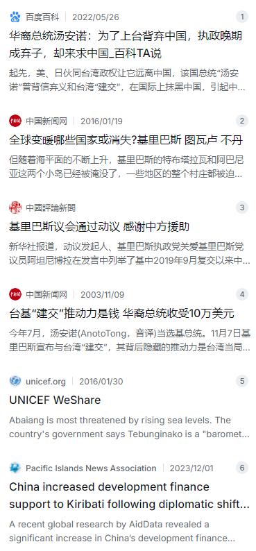 反华总统国家面临亡国,妄想向中国请求援助,最终结果是什么? 麻烦看官老爷们右上角点击一下“关注”,既方便您进行讨论和分享,又能给您带来不一样的参与感,感谢您的支持!   2003年,太平洋岛国基里巴斯出了个大新闻,一个名叫汤安诺的华裔背景政客,在大选中意外获胜,当上了总统。可这人上台后干的第一件“大事”,就让全世界都大跌眼镜——他为了抱紧台湾地区当时的某些势力大腿,居然宣布跟中国大陆断交。这一下,原本好好的两国关系,瞬间降到了冰点。   要说这汤安诺为啥这么干,背后其实都是生意。他爹汤廷海是个从广东出去的商人,但发家的历史不光彩,抗战时期在沦陷区给日本人做过事,是个汉奸。二战结束后,为了逃避清算,他才跑到基里巴斯扎根下来。汤安诺从小耳濡目染,对政治投机那一套门儿清。2003年竞选的时候,他根本没提啥正经的治国方略,反而靠着一股“反华”的邪火给自己拉票,到处造谣说中国的卫星监测站对太平洋地区有威胁。   更露骨的是,他能赢全靠台湾地区当时一些势力的金元支持。据媒体后来披露,对方不仅偷偷塞给他本人10万美元,还给他所在的政党砸了120万澳元作为竞选经费。在那个总人口才10万、投票人只有几万的岛国,这笔钱足够帮他买通不少选票,硬是把对手给比了下去。作为回报,汤安诺一上台就火速跟台湾地区建立了所谓的“外交关系”,中国自然咽不下这口气,当即宣布断交,撤走了大使馆,连之前帮基里巴斯建的卫星跟踪站也拆了。   汤安诺当时还美滋滋的,以为傍上了大腿,以后有美国、日本和澳大利亚在背后撑腰,好日子就来了。可事实证明,他太天真了。那些西方国家把他当成了一个恶心中国的棋子,用完就扔。基里巴斯真正面临的危机,根本不是那点虚头巴脑的国际支持,而是实打实的“亡国灭种”威胁。   因为全球变暖,海平面一直在涨,基里巴斯这个国家平均海拔才两米,好多岛屿都快被海水淹没了。村里的农田被海水泡坏了,喝的水也变咸了,联合国科学家甚至预测,最迟到2050年,这个国家就可能彻底从地图上消失。汤安诺这时候急了,开始满世界求人。他跑去澳大利亚,想让人家接收他的难民,结果澳方直接翻了个白眼,根本不理他。他又去找美国、日本,求他们出钱帮忙修海堤,也都是热脸贴了冷屁股,没人愿意掏这个钱。   走投无路之下,大约在2013年前后,汤安诺居然厚着脸皮回过头来求中国。他心里那点小算盘打得响:中国现在不是讲究节能减排、做负责任大国吗?那总得帮我们这些受气候变化影响最大的小国说句话吧?可他忘了,国际交往也讲究个“信”字。当年你背信弃义,拿了好处就把中国一脚踢开,现在有难了又想来抱大腿,天底下哪有这么便宜的事?中国政府的态度很明确,直接拒绝了他的请求。这种原则问题,没得商量。   这下汤安诺彻底傻眼了,在外交上成了个没人搭理的孤儿。国内民众看着别的岛国或多或少都能得到点国际援助,自家却啥也没有,海平面还在一天天往上涨,对他的不满情绪也越来越高。折腾了十几年,啥也没捞着,2016年,汤安诺在骂声中黯然下台,灰溜溜地消失在了公众视野里。   接替他的是新总统马茂。马茂是个明白人,一上台就看清楚了:之前那条路完全是死路。西方人靠不住,想自救,唯一能指望的,就是旁边那个真正强大起来、又愿意真心实意帮小兄弟的中国。于是,马茂果断出手,在2019年9月,基里巴斯正式宣布与台湾地区“断交”,转头就跟中国大陆恢复了全面外交关系。   这一次的选择,带来了立竿见影的变化。中国没让基里巴斯失望,复交后援助立马到位。中国不仅帮忙修路、建基础设施,还提供了大量物资。2020年疫情刚起来,中国就送去了医疗援助;为了帮基里巴斯发展经济,中国还提供了资金,帮他们买飞机、买船,发展渔业和旅游业。这些实实在在的好处,老百姓都看在眼里,马茂也因为走对了这步棋,赢得了民众的信任,顺利连任。   回过头看基里巴斯这十几年走过的弯路,其实就是小国外交的一面镜子。汤安诺为了那点私利,把国家绑上了别人的战车,结果差点把整个国家都给耽误了。而马茂的务实外交,才算是把基里巴斯从悬崖边拉了回来。事实证明,在国际交往中,唯有真诚相待、互利共赢,才是真正的生存之道。那些搞投机、玩背叛的,到头来只能是搬起石头砸自己的脚。