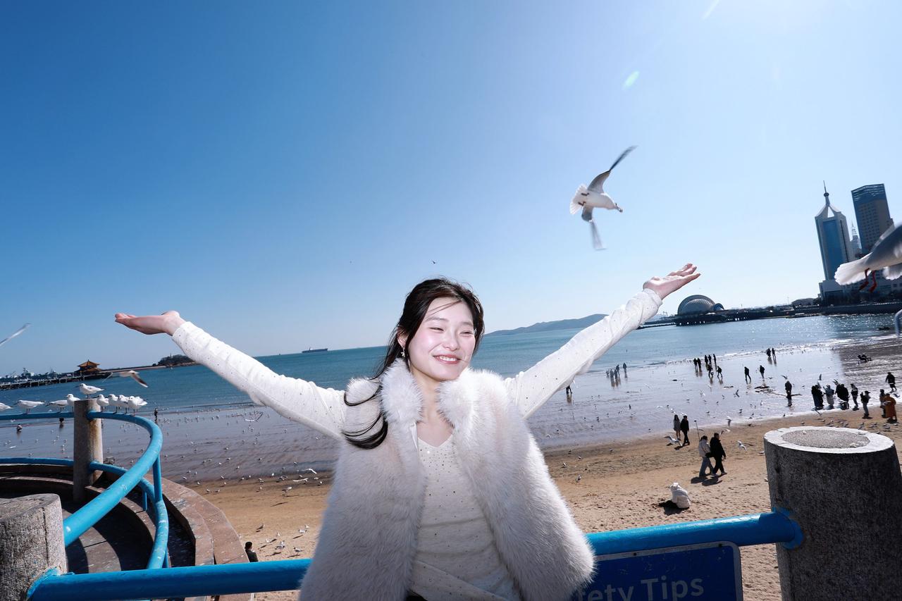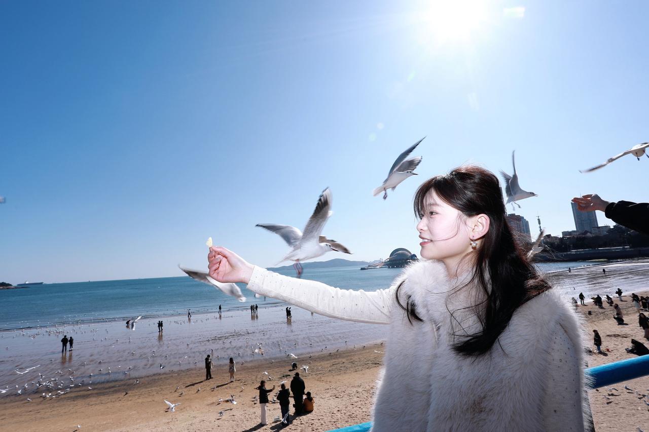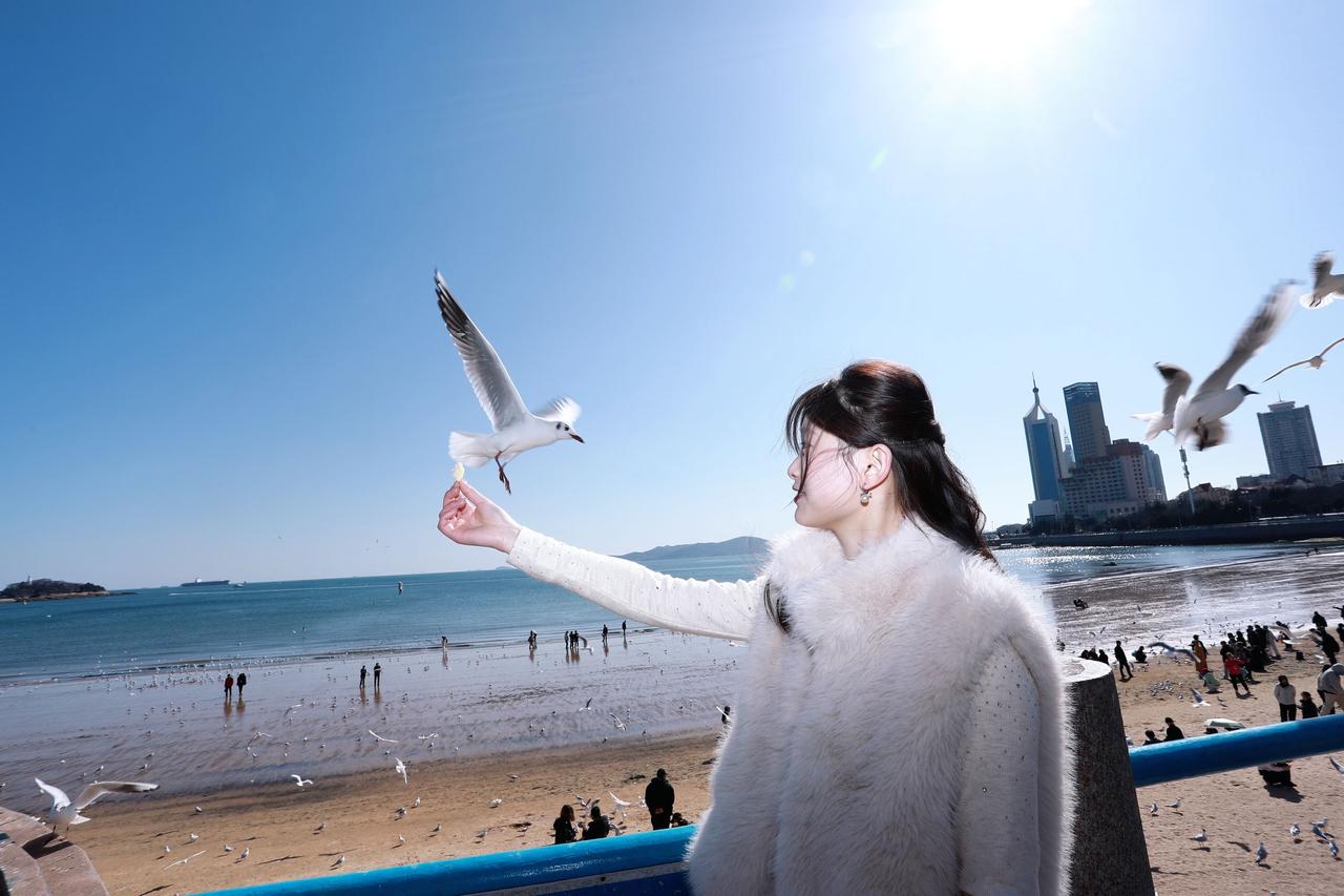 人像摄影约拍跟拍青岛海鸥之约栈桥海鸥青岛鸥遇我镜头里的美女原创原图直出照片