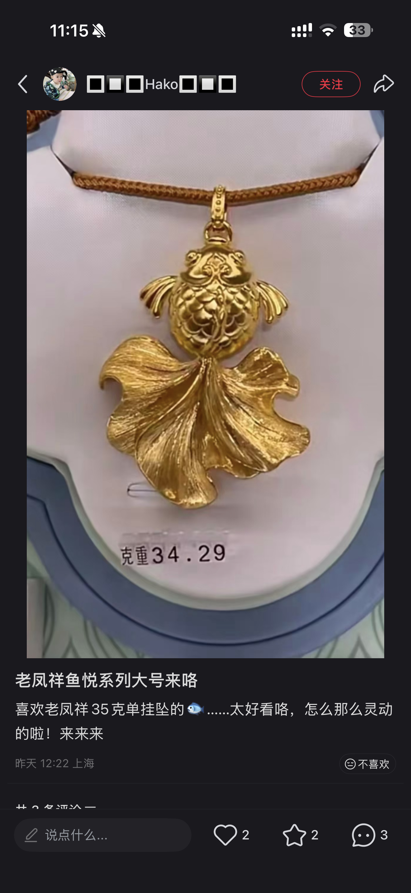 定了个老凤祥的金鱼。 你们觉得好看吗金价黄金a股