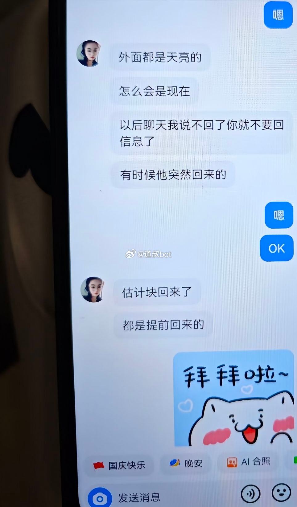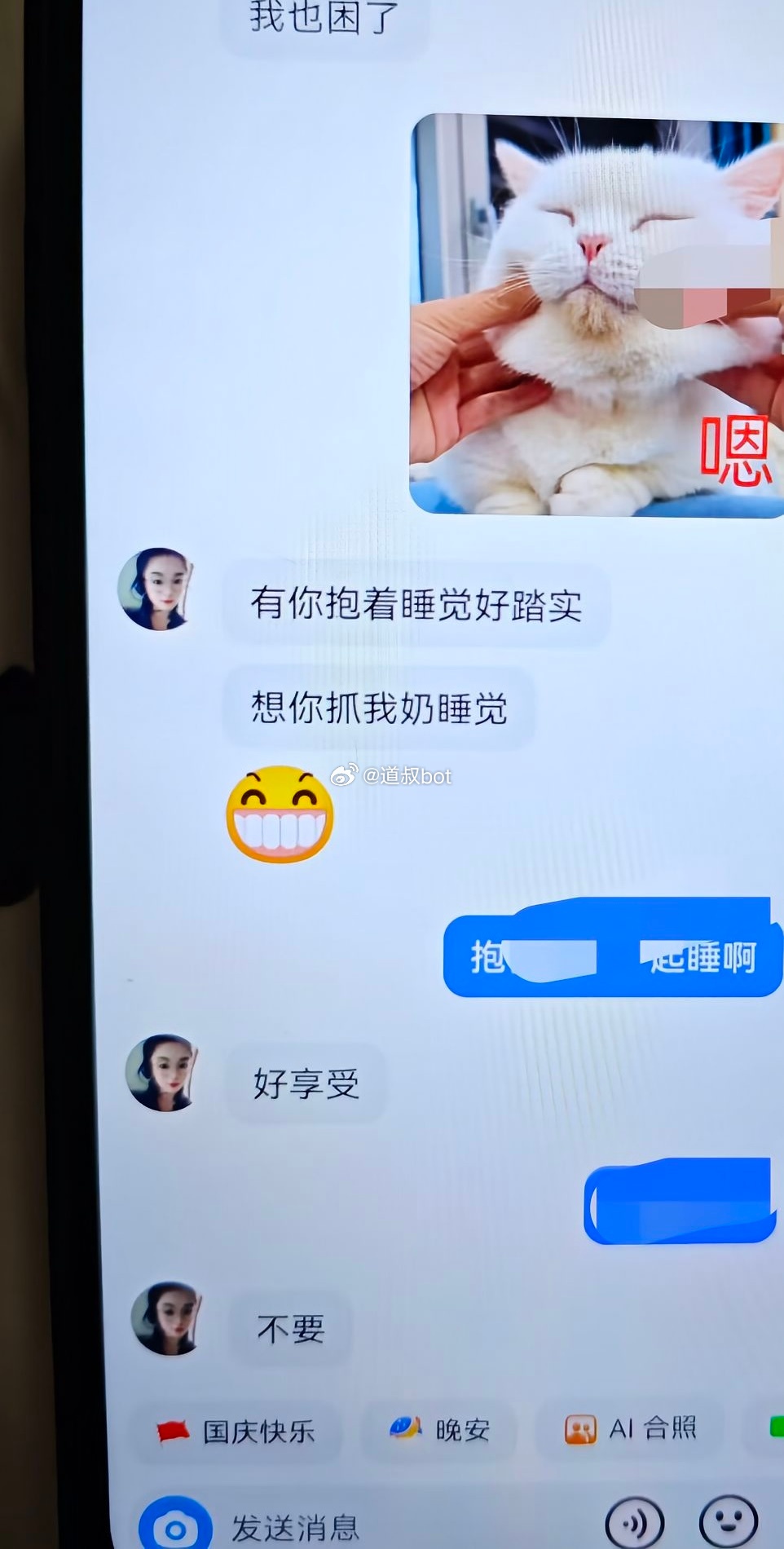 网友爆料,发现小三和老公的聊天记录,称“有你抱着睡觉好踏实”“想你抓我奶睡觉”