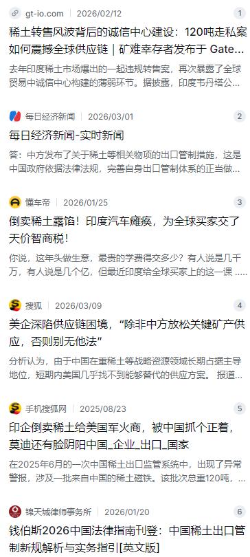 120吨中国稀土被印度非法转售美国军工,全球稀土市场大震动,中国严查掀起诚信风暴,印度稀土产业信誉危机! 麻烦看官老爷们右上角点击一下“关注”,既方便您进行讨论和分享,又能给您带来不一样的参与感,感谢您的支持!   这起震动全球稀土市场的事件,源头要追溯到2025年年中。当时,中国先进的稀土出口追溯系统突然亮起红灯,一批总重120吨、用于新能源车的稀土永磁材料,在运抵印度后出现了诡异的物流轨迹。这批货表面上的收货方是印度马哈拉施特拉邦的一家车企,承诺用于电机制造,但系统数据显示,货物并未进入生产线,而是被拆散转运,经过马来西亚和越南的中转包装后,最终流向了美国南卡罗来纳州的军工重镇。   进一步的调查结果更让人吃惊。通过江西稀土研究中心采用的"稀土指纹"识别技术,也就是分析不同矿区稀土产品中独特的同位素配比,最终确认这批被转卖的稀土来自中国江西矿区。而它的最终收货方,竟然涉及美国军工巨头洛克希德·马丁和雷神公司的总装厂,最终用途直指导弹制导系统和F-35战斗机的零部件。这笔交易在当时的溢价高达60%,巨大的利润空间让涉事的印度企业不惜铤而走险,通过伪造最终用户证明,玩起了瞒天过海的把戏。   事件曝光后,中方的反应迅速且坚决。商务部第一时间启动调查,并将涉事的印度相关企业列入了"不可靠实体清单",这意味着它们不仅被永久取消了购买中国稀土的资格,其在华资产也被冻结。这一记重拳,直接打在了违规者的七寸上。与此同时,中国在2025年下半年接连出台了一系列更为严密的出口管制法规,比如引入"50%穿透规则",不仅管住直接出口,连海外工厂使用含中国稀土技术的衍生品也要纳入监管,目的就是堵死任何企图通过第三国洗单、转手的漏洞。   这起事件对印度本土工业的冲击几乎是毁灭性的,应了那句老话:偷鸡不成蚀把米。由于涉事企业违规,中国实质上暂停了相关品类的对印出口,这让严重依赖中国稀土磁材的印度支柱产业瞬间"断粮"。塔塔汽车等知名车企的电动车生产线因为缺少核心的含镝磁材,不得不宣布停产或推迟扩产计划;更尴尬的是印度的"光辉"战斗机项目,也因为关键零件的稀土断供导致组装进度停滞。据当地媒体报道,印度新能源车行业每天因此损失的金额超过3亿美元,而政府此前号称砸下700亿卢比自建稀土产业链的计划,也因为提纯技术卡在82%、远低于中国99.99%的水平,被外界普遍看衰。   在这场风波中,最焦虑的其实是美国军工企业。尽管美国政府嘴上喊着要与中国"脱钩",并拉拢盟友试图重建供应链,但现实却非常骨感。中国的出口管制措施,哪怕是暂缓执行期间,严格的最终用户审查依然让美国企业叫苦连天。有咨询公司的专家直言,除了等中国放松供应,"目前没有其他直接的全面解决方案"。洛克希德·马丁等军火商的F-35生产线面临随时停摆的风险,因为即使它们能找到替代的稀土矿,短期内也无法复制中国那种规模化、高纯度的精炼能力,这种能力的背后是几十年积累的技术和完整的产业链。   耐人寻味的是,尽管莫迪政府在国际场合,比如在金砖峰会上曾影射中国的资源政策,但在台下,印度外交部却不得不派出代表团,到北京低声下气地请求恢复民用稀土订单。这种表里不一的做法,让其所谓的"资源主权"论调显得苍白无力。更让印度尴尬的是,一直嚷嚷着要扶持印度替代中国的欧美日等伙伴,在这件事后也集体沉默了,德国大众、美国通用等企业甚至掉头向中国申请"绿色通道",因为它们看明白了,在稀土精炼技术和产能上,短期内根本没有能替代中国的位置。   这一连串的连锁反应,给全球供应链上的所有玩家都上了一课。中国建立的稀土全链条追溯系统,从开采、冶炼到出口的每一个环节都有据可查,加上"稀土指纹"这类技术手段,相当于给每批稀土都装上了隐形的"追踪器"。那些想靠耍小聪明、伪造文件赚快钱的企业,最终发现不仅钱没赚到,反而把自己的国家工业信誉给搭了进去。对于印度而言,这120吨稀土不仅没变成汽车零件,反而变成了砸在自己脚上的石头,它在全球贸易中的形象因此蒙上了厚厚的阴影,想修复这道信任裂痕,恐怕需要相当长的时间。   如今,全球稀土市场已经进入了一个"安全优先于成本"的新阶段。中国的举措并非要切断供应,而是要确保这种战略资源用在合规的民用领域,维护全球供应链的稳定与公正。这起120吨稀土案就像一个分水岭,它清楚地告诉世界:在高度复杂的全球产业链中,只有尊重规则、守住诚信,才能真正拿到进入未来高端制造赛场的入场券。