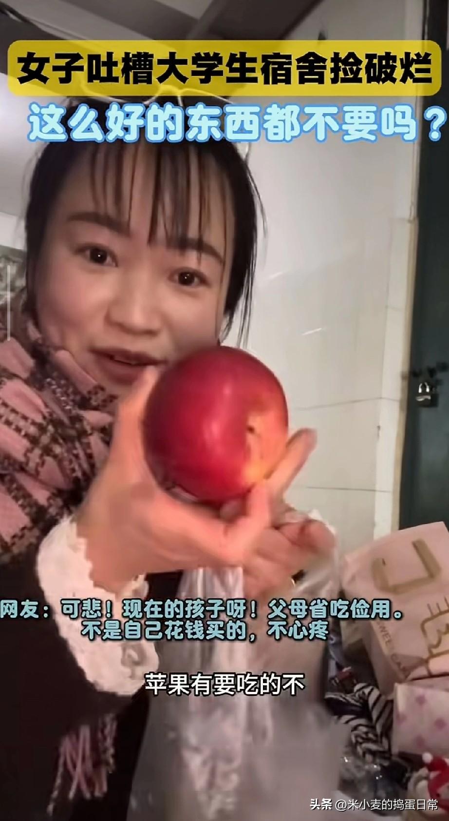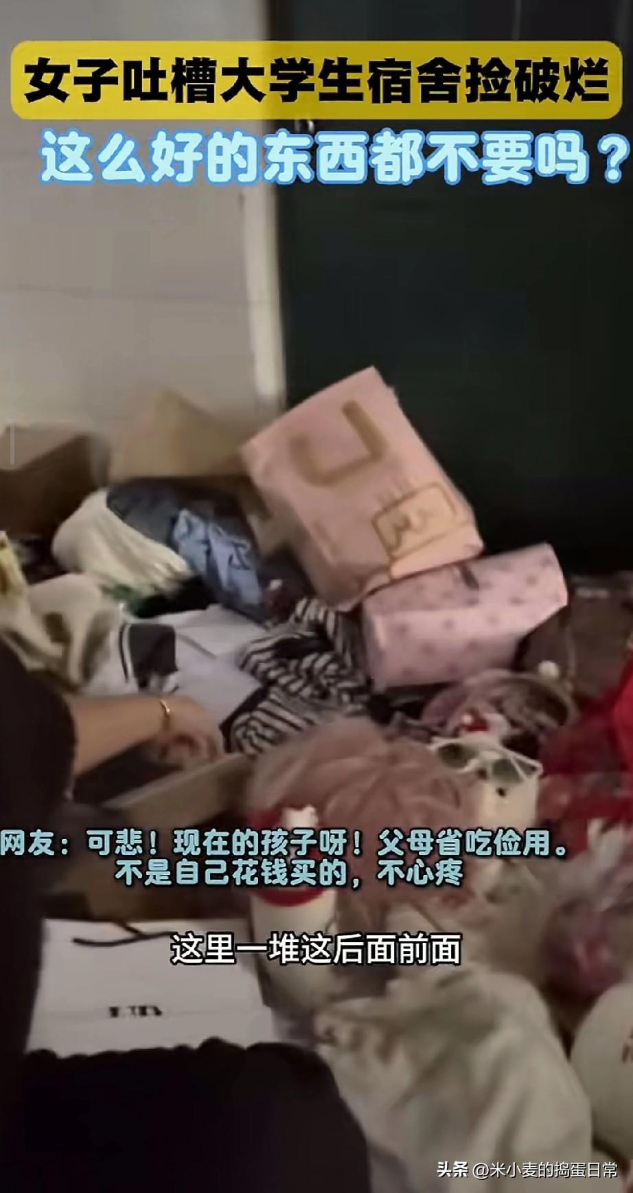 大学生宿舍的破烂,捡得阿姨直崩溃! 这届孩子真的不心疼吗? 女子蹲在大学宿舍楼道,对着堆积如山的“破烂”满脸无奈,直言捡到晚上6点半都捡不完,最后直呼“谁爱捡谁捡”。 可这些哪里是破烂?没拆封的纸巾、成色尚好的外套、新鲜的苹果,甚至还有小家电,件件看着都能正常用。 网友们吵翻了,有人怒批:“父母省吃俭用供读书,不是自己买的就不心疼?”也有大学生反驳:“毕业跨省搬家,运费比东西贵,带不走只能扔!” 其实不是孩子不懂节约,而是现实太无奈。长途托运的成本、租房的空间限制,都让“带不走”成了常态。 你觉得这是浪费,还是成年人的身不由己?