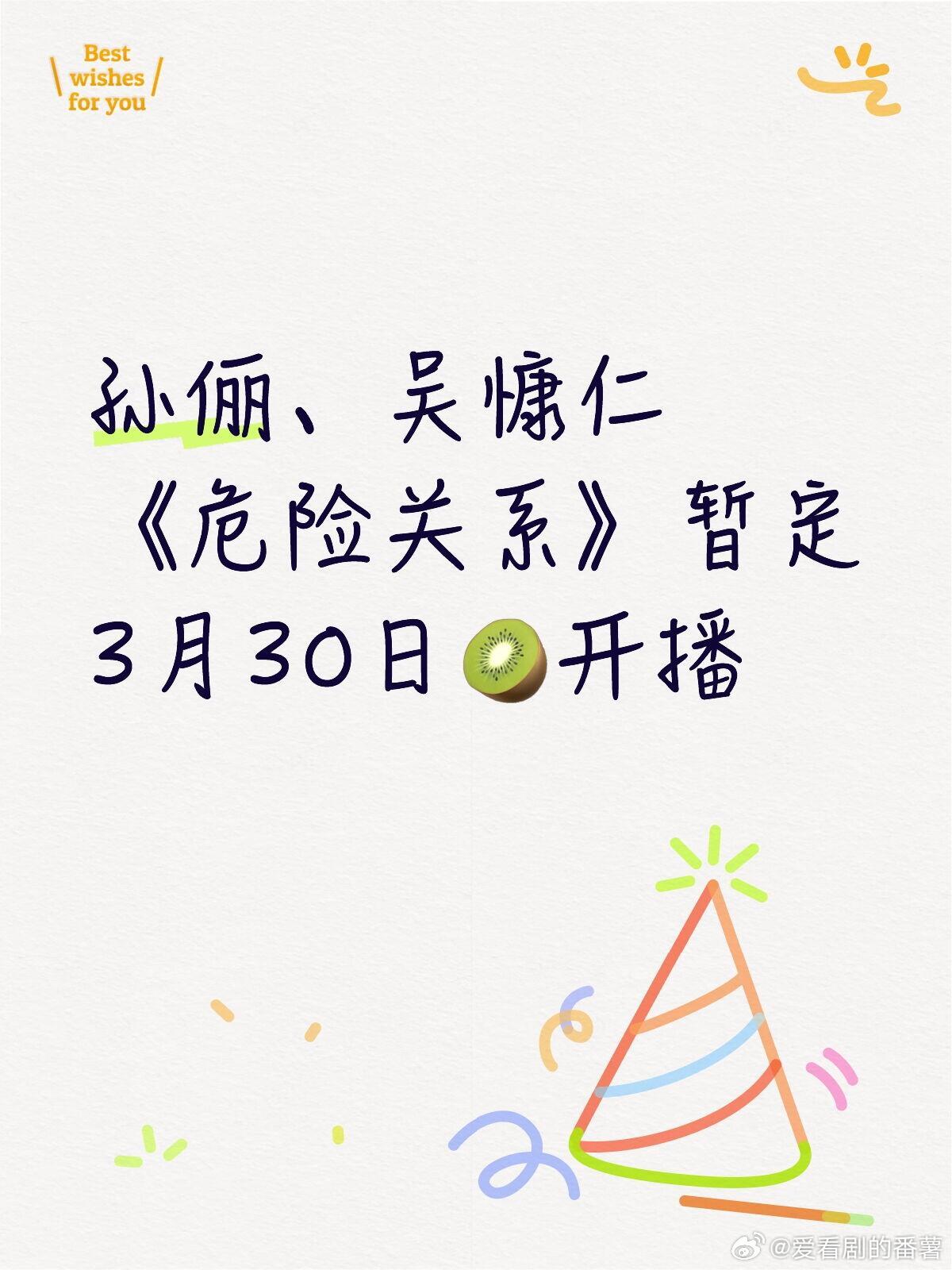 孙俪、吴慷仁《危险关系》暂定3月30日爱奇艺开播