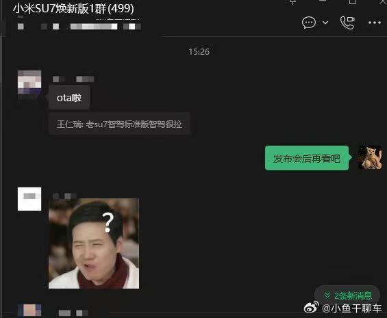 新款小米SU7消息互通群多了一个位置,需要进的小伙伴,微信加BlueCloudRiver拉你。