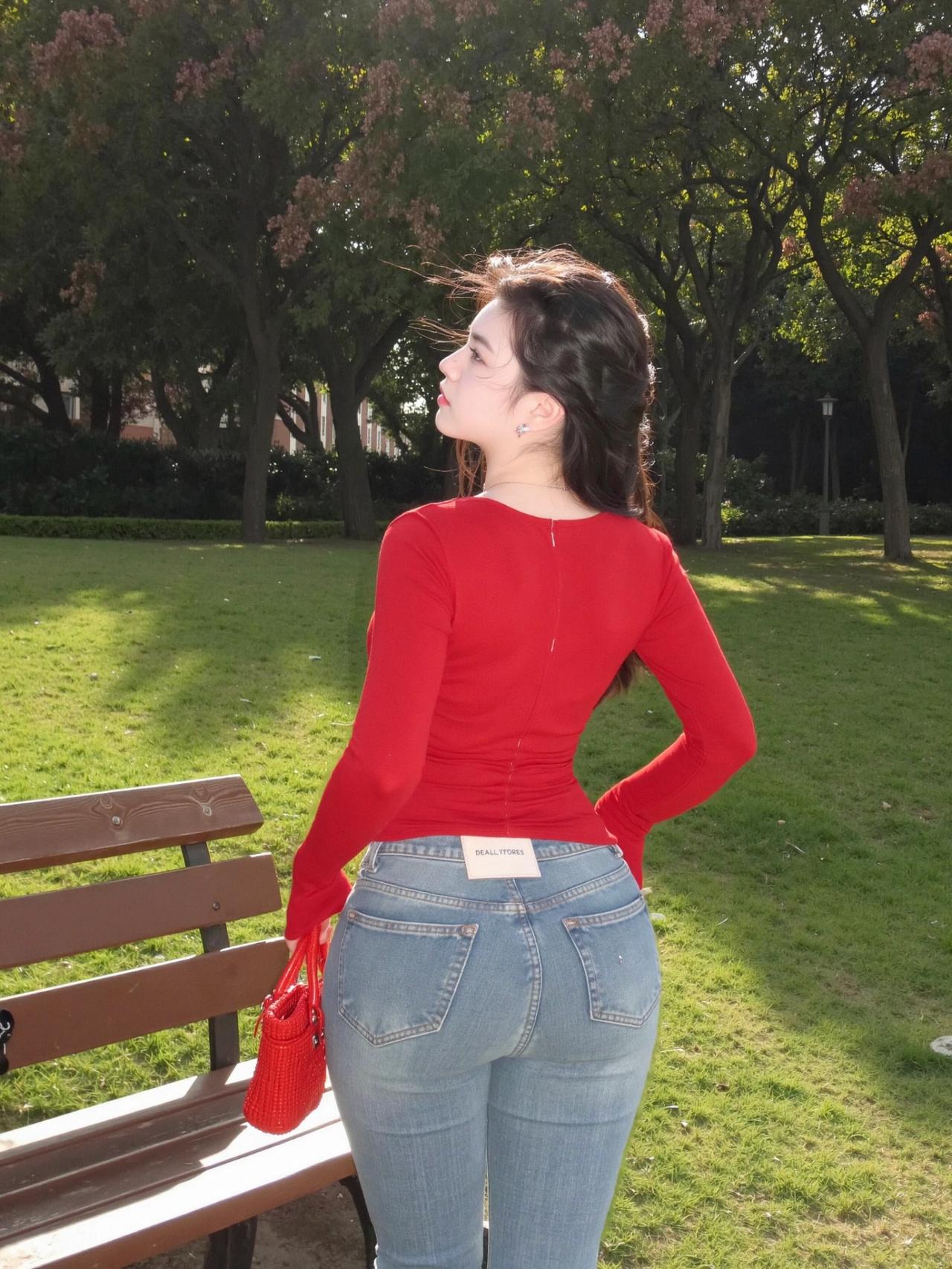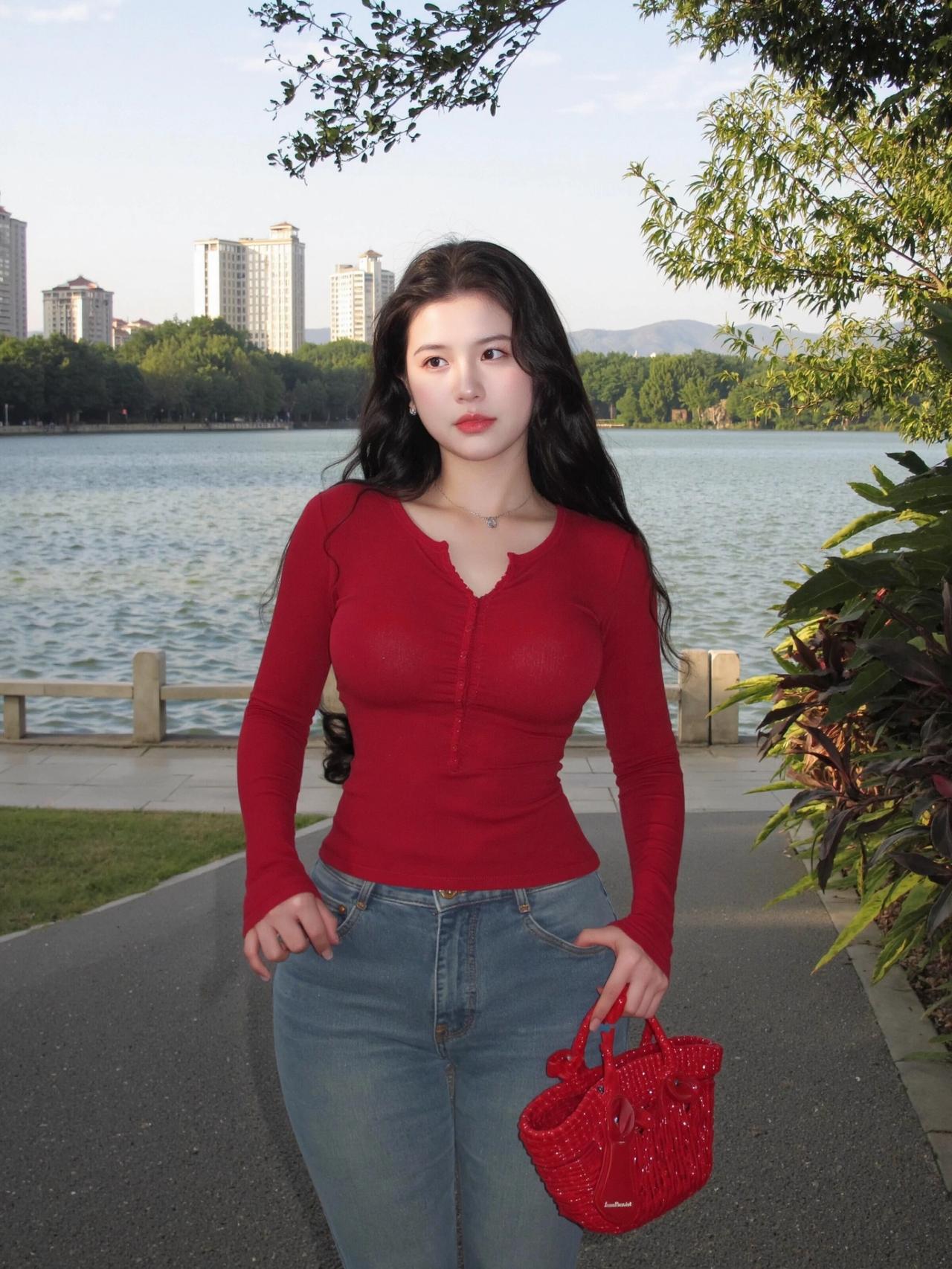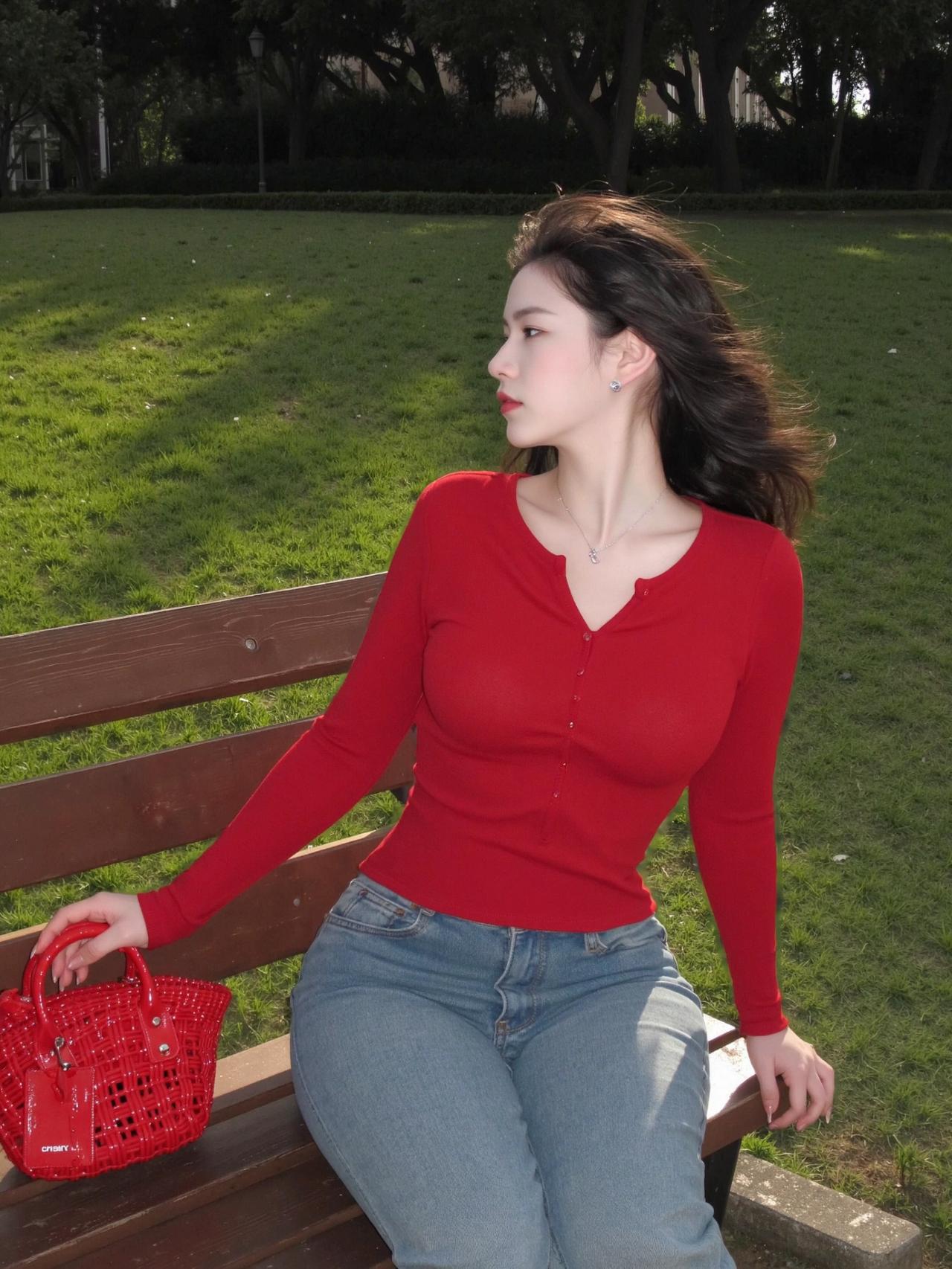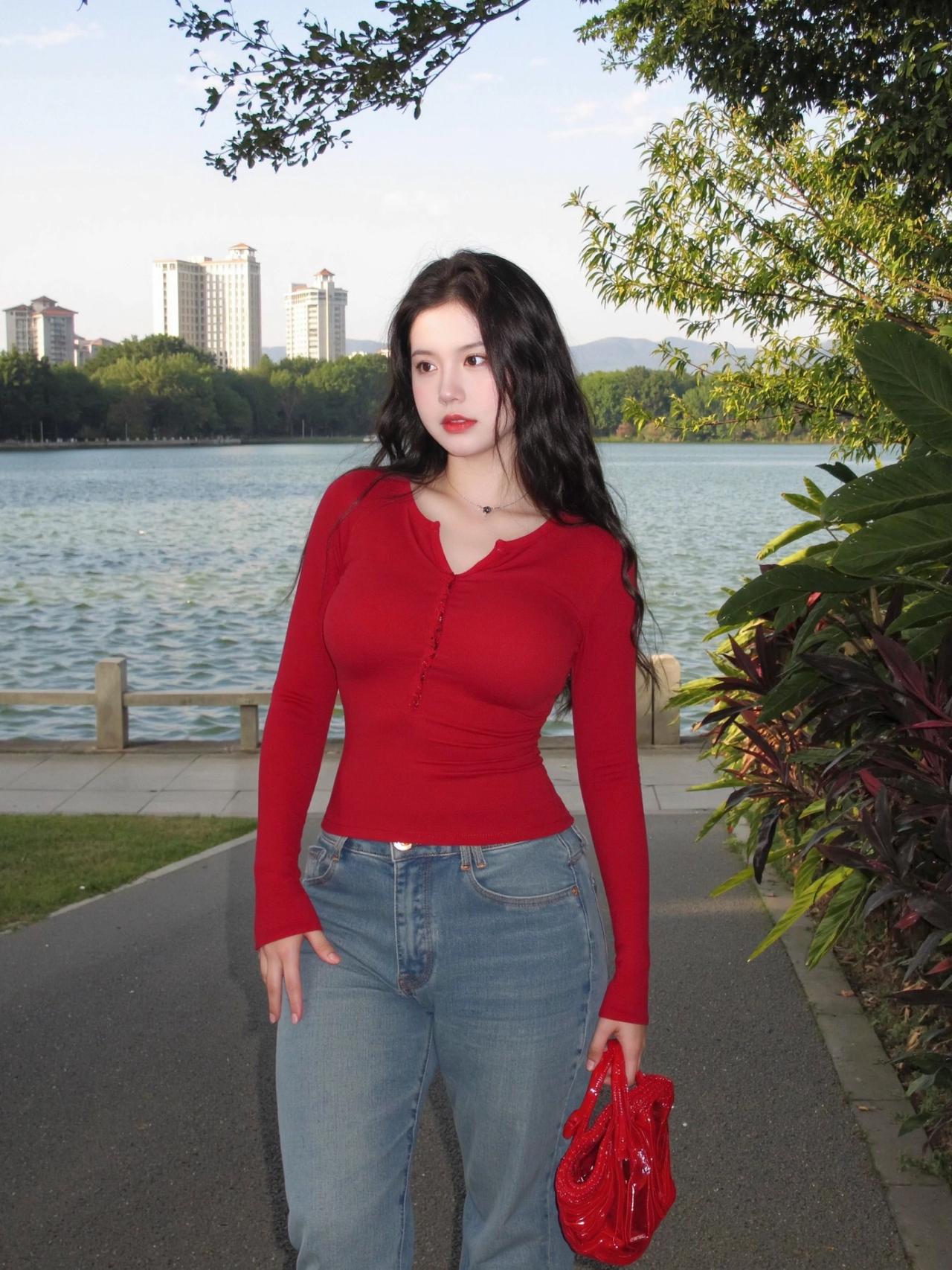 傍晚的草地自带柔光,随便一站都很出片😌 红上衣配浅牛仔真的太显气色了。 贴身红长袖把腰线收得干净利落,整个人挺拔又精神,浅色牛仔刚好中和了亮色的跳脱,耐看又不浮夸。 红配绿一点都不土,反而衬得肤色通透又显白✨ 往草地上一坐,风一吹就很放松,简简单单,就是最舒服的日常记录🍃