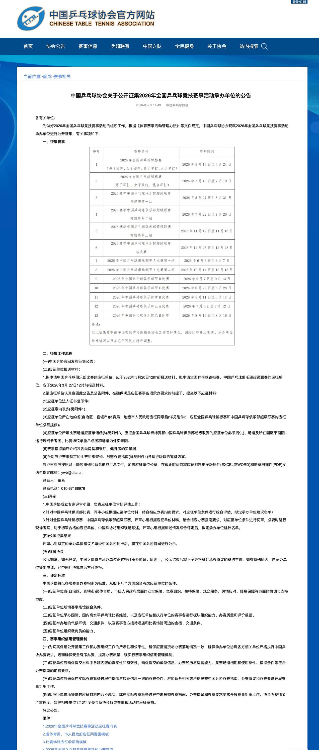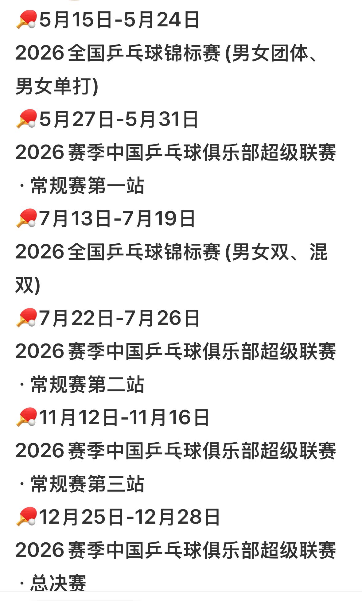 2026全锦赛,乒超联赛时间确定——中国乒协公开征集赛事承办单位! 2026全锦赛分两个阶段举行, 2026乒超联赛和去年一样, 分四个阶段完成! 这个赛程穿插在WTT的赛事 空隙,运动员真的很累! 5月15日至24日全锦赛第一阶段, 7月13日至19日,全锦赛第二阶段, 但全锦赛。一般主力都不 参赛,这是选拔小将的最佳机会! 乒超联赛分四个阶段进行, 希望河北在承办一次, 毕竟离我们这么近, 期待确定比赛地点, 国乒运动员加油!