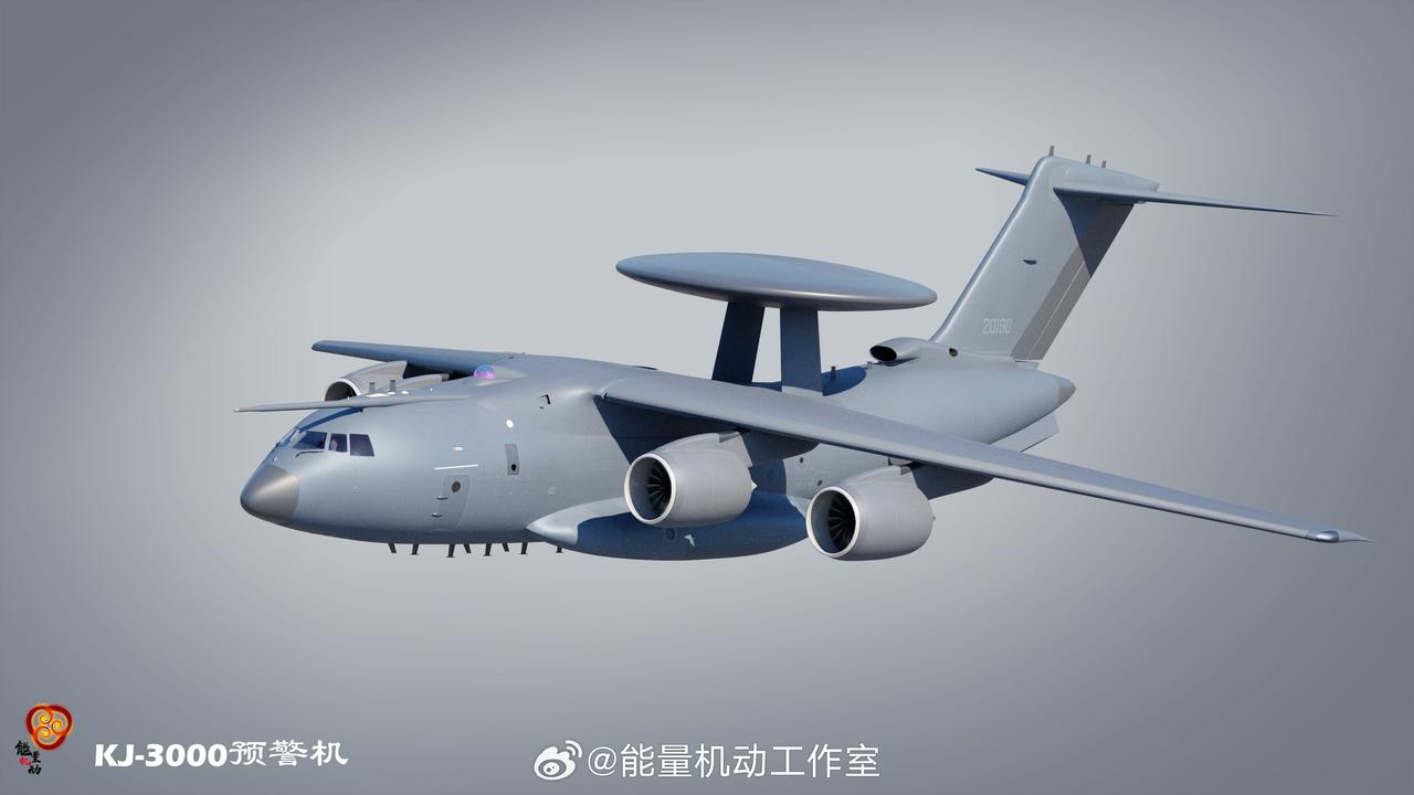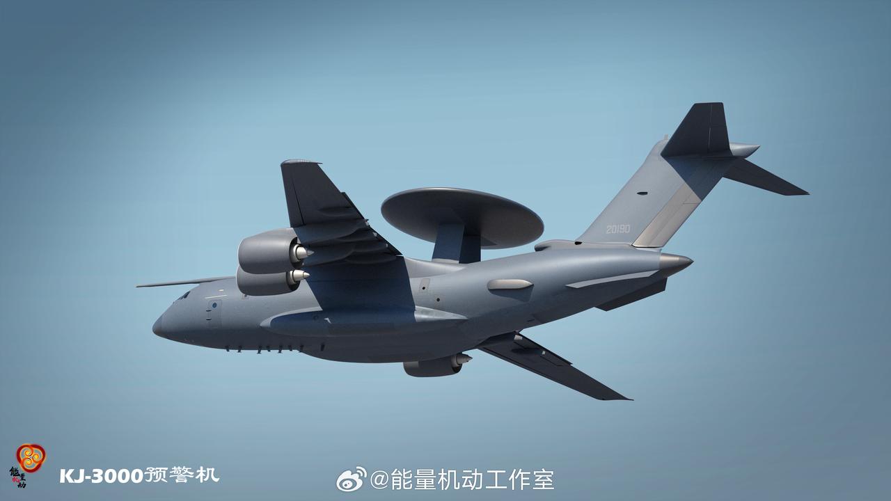 一架 KJ-3000 原型机编号7821 ,从这个角度看,的确是双面阵大圆盘,单面尺寸更大,看得更远, 迫不及待想看它身披灰色涂装后的样子。